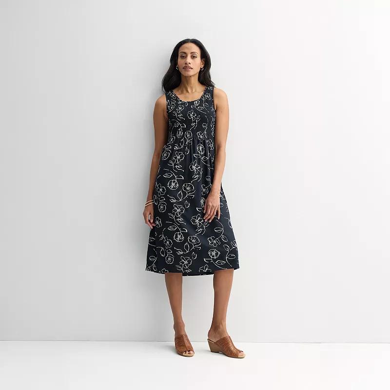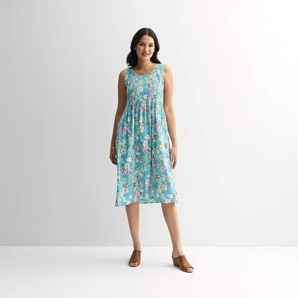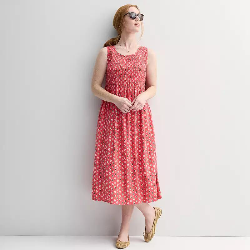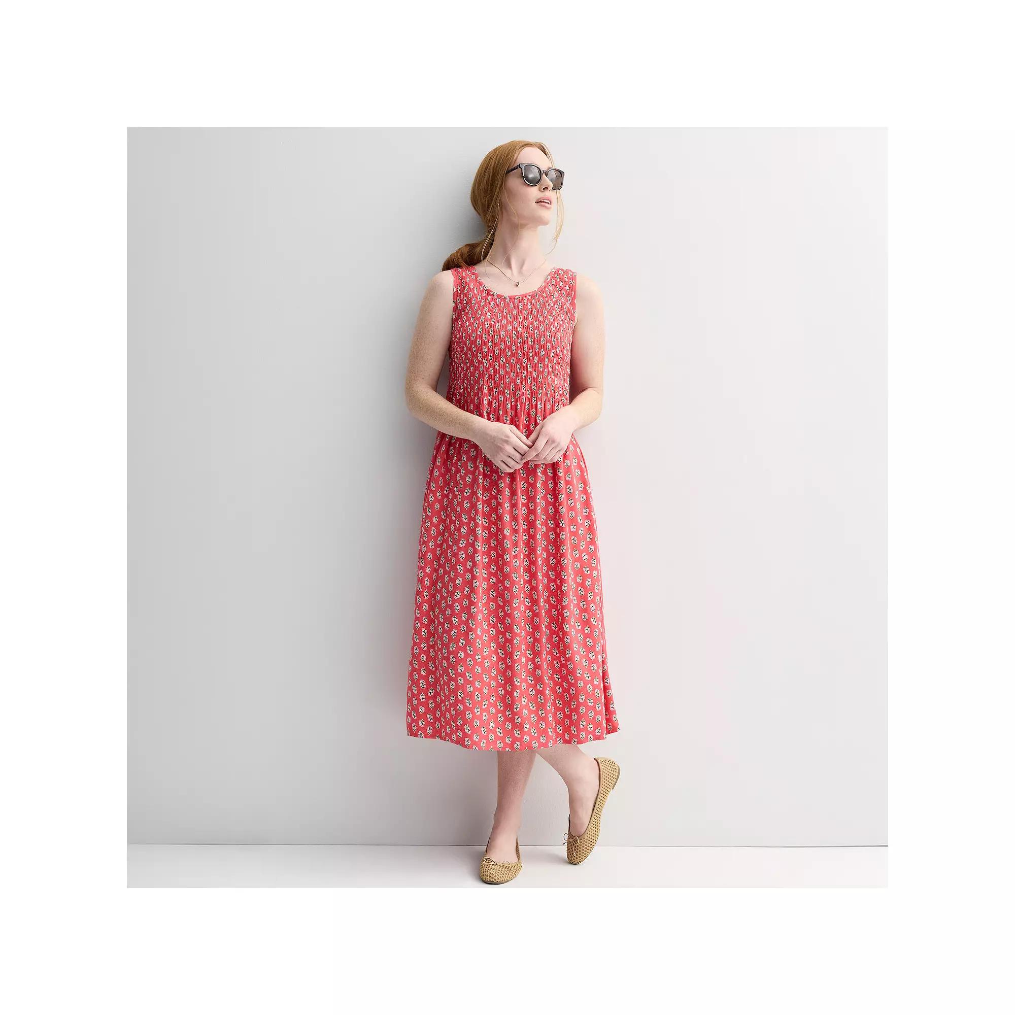 You'll love the sweet warm-weather style of this petites' Croft & Barrow smocked midi dress. Click on this WOMEN'S GUIDE to find the perfect fit and more! - https://www.kohls.com/feature/womens-fit-guide.jsp. Smocked bodice, Scoopneck, Sleeveless, Flowy challis construction. FIT & SIZING: 44-in. approximate length from shoulder to hem, Swing cut, Midi length. FABRIC & CARE: Rayon, Machine wash, Imported. SUSTAINABILITY FEATURES: Tested for harmful substances, 11-56883, www.oeko-tex.com/standard100, Contains rayon manufactured using responsible methods. Size: L Petite. Color: Red Craft Bloom. Gender: female. Age Group: adult. Material: WOVEN.