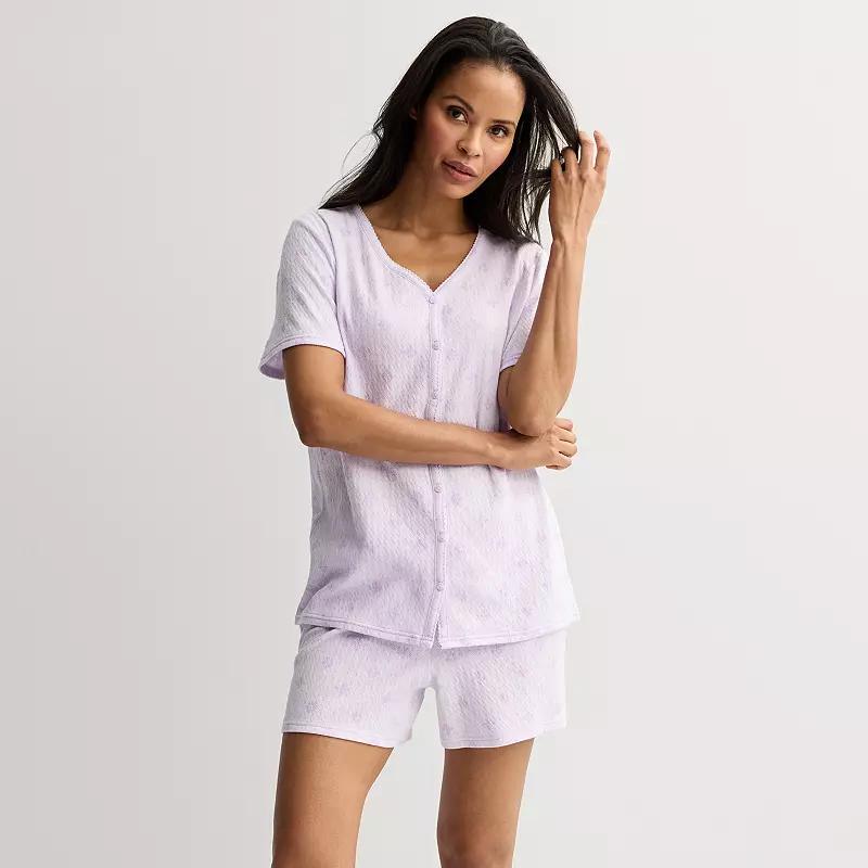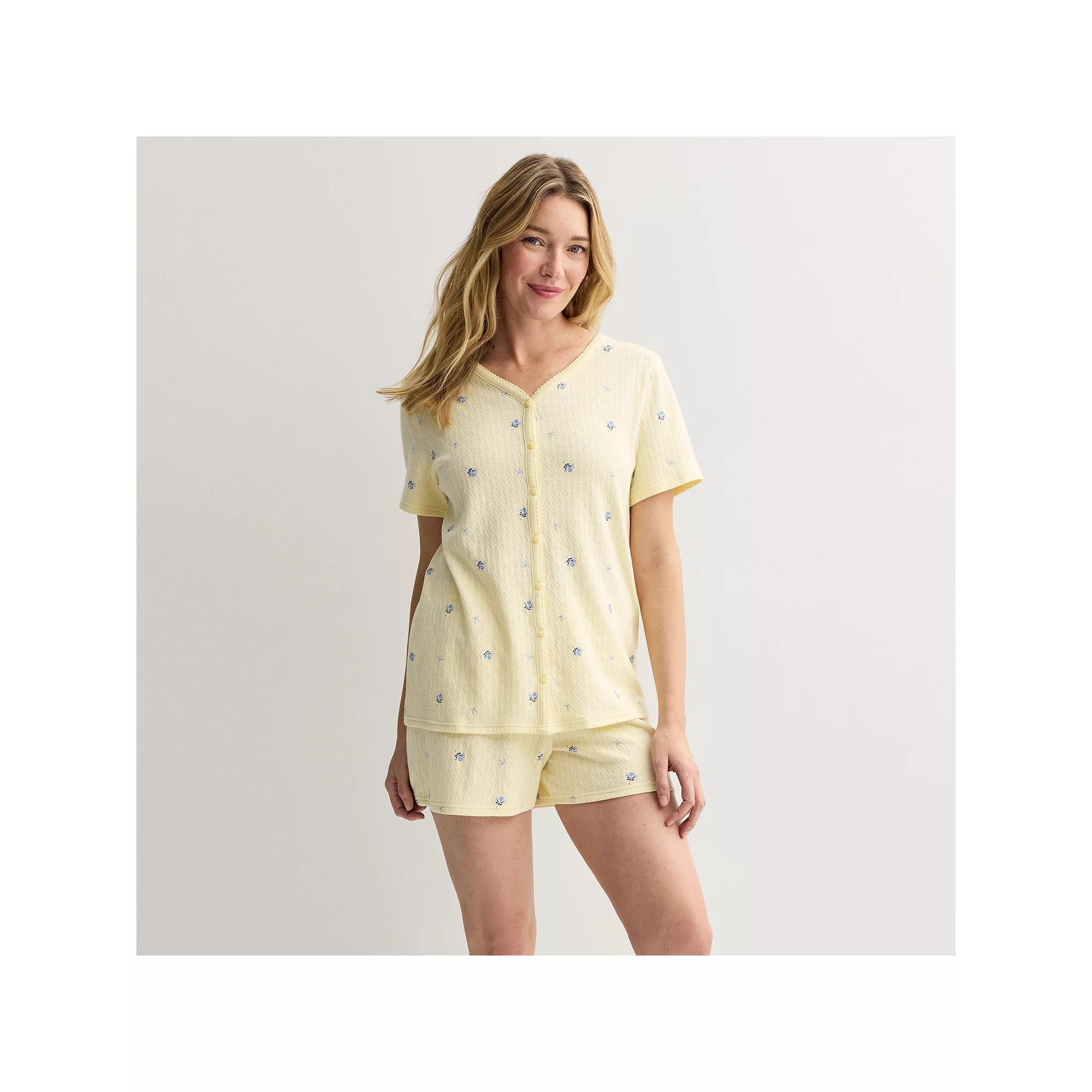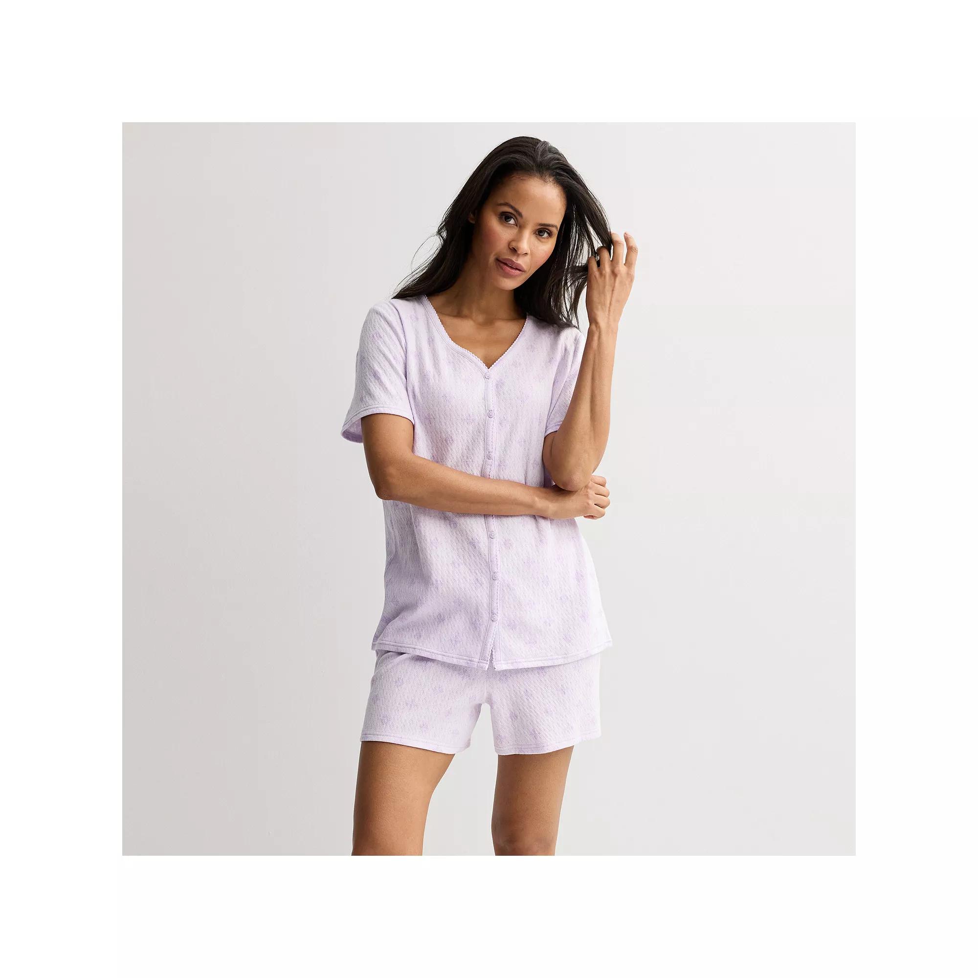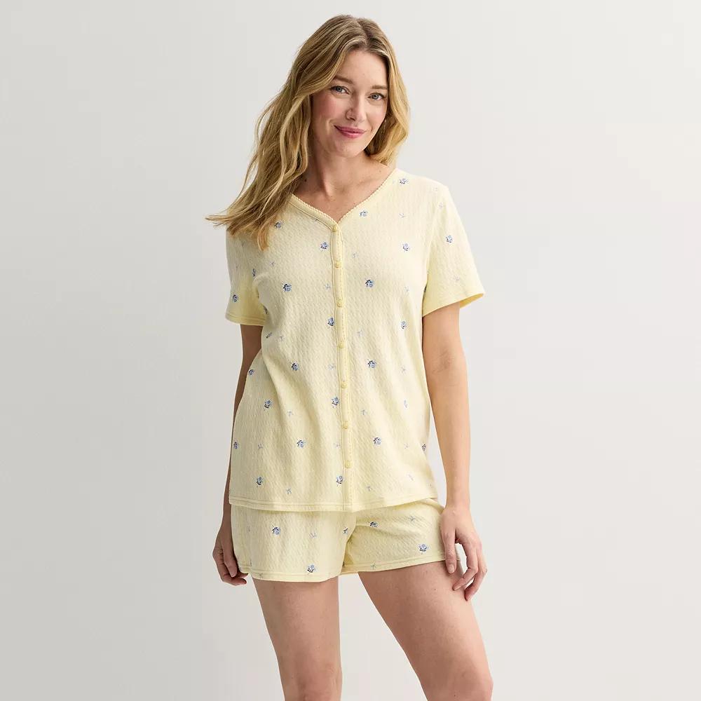 Embrace cozy evenings and lazy mornings with this delightful set featuring a textured knit top and comfy shorts. Croft & Barrow® knows that relaxation is key, so you can unwind in style while feeling as fabulous as you look. Click on this INTIMATES & SLEEPWEAR GUIDE to find the perfect fit and more! - https://www.kohls.com/feature/womens-sleepwear-and-intimates-guide.jsp. FEATURES: Soft feel. FIT & SIZE: Regular fit, Midrise sits on the high hip, Petite: 4-in. inseam, Straight leg opening, Covered elastic waistband. DETAILS: Includes top and shorts, V-neck, Short set-in sleeves, 2 pockets on shorts, Imported. MATERIAL & CARE: Cotton, polyester, Machine wash. Size: S Petite. Color: Soft Rhombus. Gender: female. Age Group: adult. Material: COTTON BLEND.