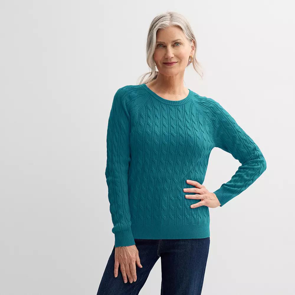 Update your wardrobe with this fashionable women's cabled crewneck sweater from Croft & Barrow®. Click on this WOMEN'S GUIDE to find the perfect fit and more! - https://www.kohls.com/feature/womens-fit-guide.jsp. FEATURES: Crewneck, Long sleeves, Cabled knit construction. FIT & SIZING: Lightweight sweater: A breezy essential with an easy fit, ideal for mild days or indoor comfort. FABRIC & CARE: Acrylic, Machine wash, Imported. Size: XL Petite. Color: Navy. Gender: female. Age Group: adult. Material: OTHER MATERIAL.