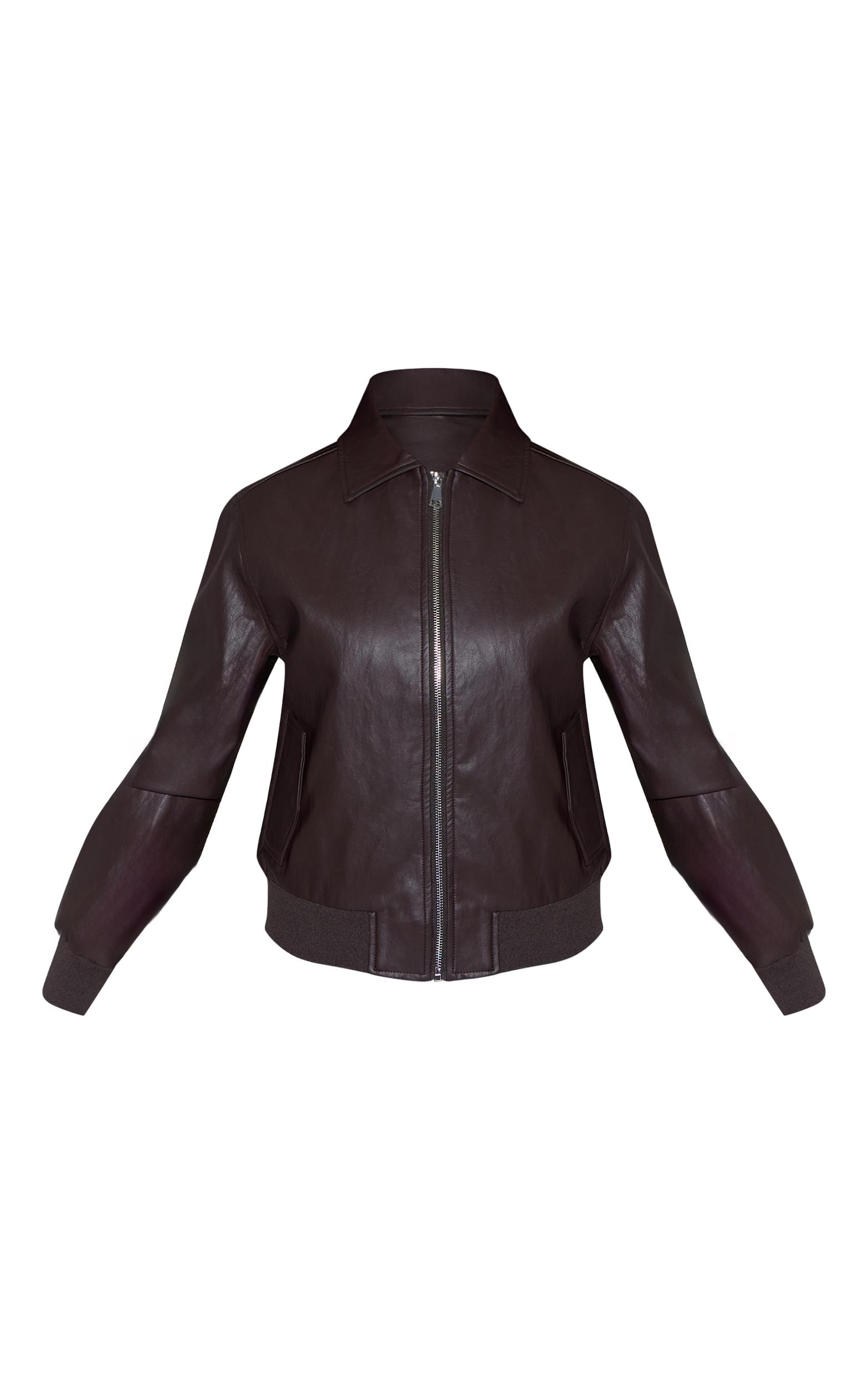 Master the art of effortless layering with this ultimate wardrobe essential. The petite dark chocolate faux leather bomber jacket brings a rich, deep hue to your outerwear collection. Its relaxed silhouette, complete with a classic collar and full zip fastening, offers a contemporary yet timeless vibe. Ribbed cuffs and hem ensure a comfortable fit, while the flap pockets add practical detail. Pair this bomber with high-waisted wide-leg denim pants and chunky sneakers for an urban cool aesthetic. It’s the perfect piece to elevate your casual day looks with understated confidence.Length approx 45.5cm/18inch (Based on sample size XS)Model wears size XSModel Height - 5ft 2inchp]:!mb-4inch>Brand: PrettyLittleThingCategory: OuterwearProduct type: BomberColor: Dark ChocolateMaterial: Faux LeatherSleeves: LongOccasion: Day