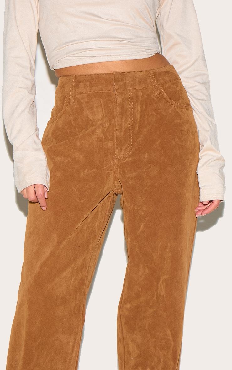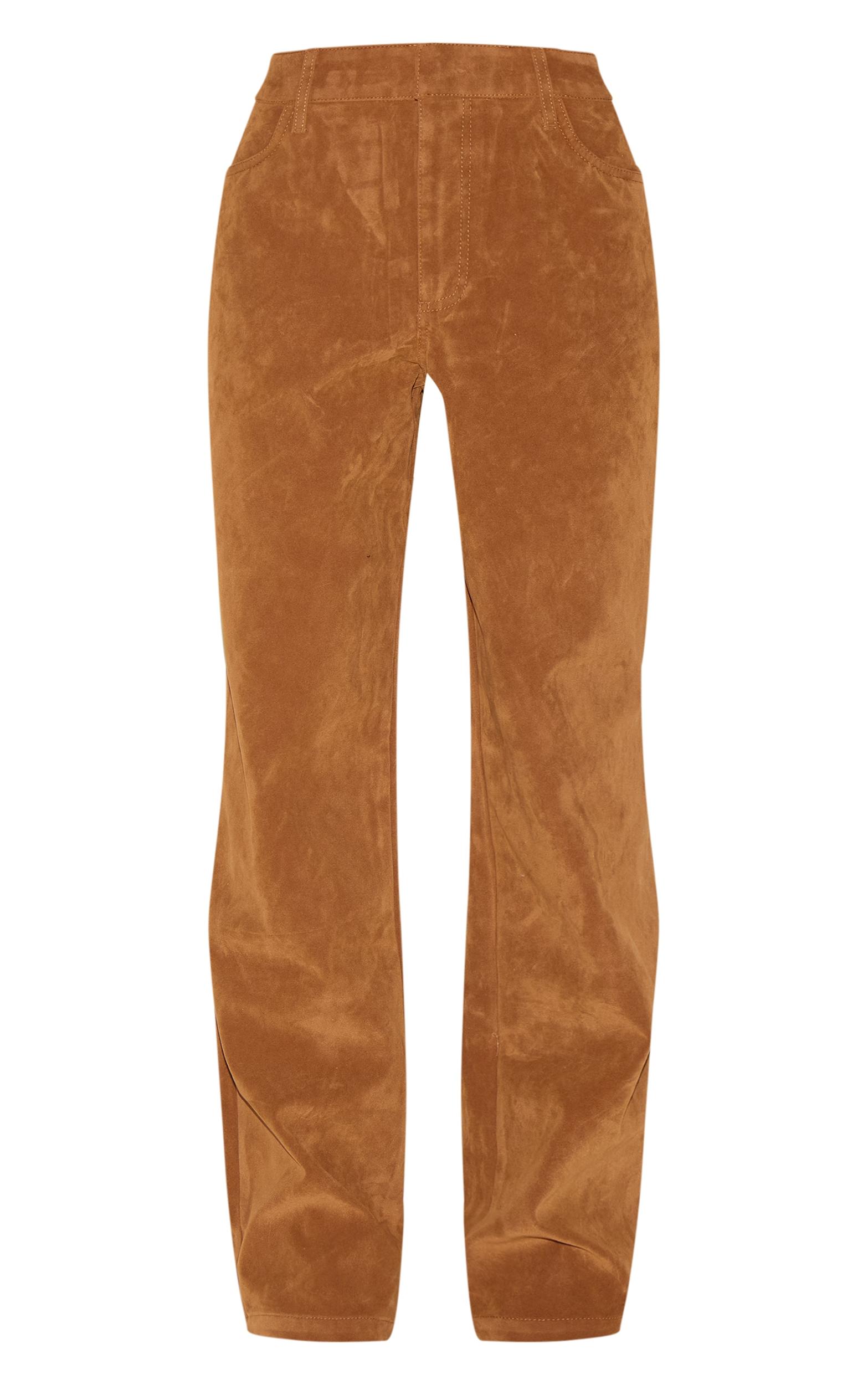 Consider these your new foundation piece: faux suede pants, rendered in a rich, deep tan. The straight leg cut offers a streamlined silhouette, while the mid-rise waist allows for versatile styling. Constructed from tactile faux suede, these pants bring a subtle textural element to your everyday wardrobe. Pair yours with a crisp poplin shirt and sculptural jewelry for a considered daytime look, or elevate for evening with a slinky camisole. They also work beautifully with a pair of sharply tailored wide leg pants in a complementary tone for a modern, tonal statement. Length approx 66cm/26inch (Based on sample size US 2)Model wears size UK 6/ EU 34/ AUS 6/ US 2Model Height - 5ft 2inchp]:!mb-4inch>Brand: PrettyLittleThingCategory: BottomsProduct type: StraightColor: Deep TanMaterial: Faux SuedeOccasion: Evening