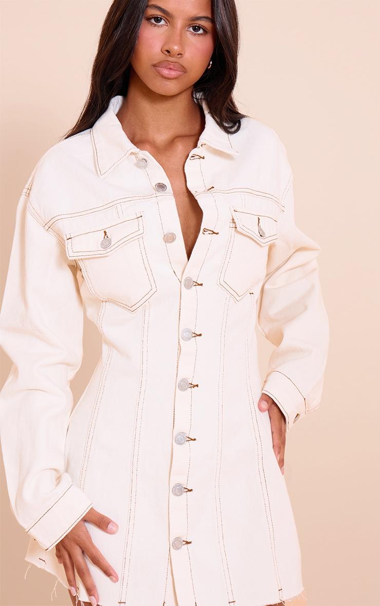 Keep it classic in this petite ecru denim long sleeve fitted mini dress. Brought to you in neutral toned denim, this dress has a classic denim shirt design with button fastenings, long sleeves and pocket detailing. Team this piece with kitten heels and understated gold earrings for off-duty day chic.Length approx 76cm/30inch (Based on sample size US 2)Model wears size UK 6/ EU 34/ AUS 6/ US 2Model Height - 5ft 3inchp]:!mb-4inch>Brand: PrettyLittleThingCategory: DenimProduct type: Denim Evening DressColor: EcruMaterial: Rigid DenimNeckline: V NeckSleeves: LongOccasion: Evening