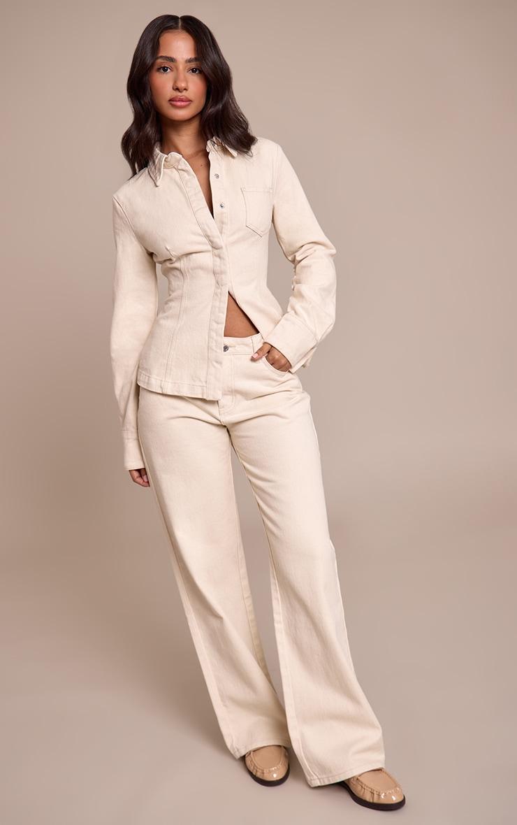Reimagine your denim rotation with an impeccably tailored aesthetic. This petite ecru pocket detail cinched waist denim shirt commands attention with its sculpted profile, featuring a classic shirt collar that leads to a clean V-neckline framed by understated popper fastenings. Artful vertical seaming defines the waist with precision, complemented by a single chest pocket and refined long sleeves, all in a versatile ecru hue. For a cohesive statement, pair this piece with its matching denim pants, completing the ensemble with elegant court heels and a subtle flash of gold jewelry for an undeniably polished look that transitions with inherent self-assurance.Length approx 45.5cm/18inch (Based on sample size US 2)Model wears size UK 6/ EU 34/ AUS 6/ US 2Model Height - 5ft 2inchp]:!mb-4inch>Category: DenimProduct type: Denim ShirtColor: Ecru.Material: Rigid DenimOccasion: Day