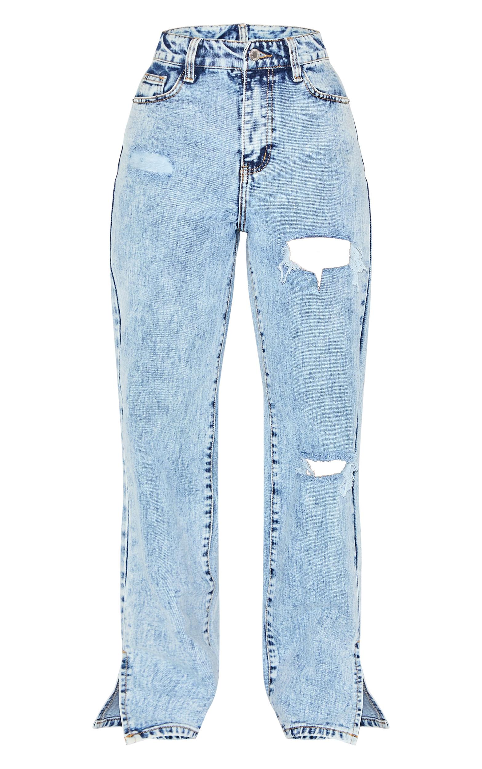 Consider these your new denim disruptor. Crafted from a considered ice blue wash, these jeans offer a modern take on a wardrobe essential. Distressed detailing lends an artful edge, whilst the split hems provide a subtle point of difference, elongating the silhouette. The petite fit ensures a considered proportion. Style yours with a sharply tailored blazer and sculptural heels for an elevated daytime aesthetic. Alternatively, explore our range of pants for equally compelling pairings.Length approx 74cm/29inch (Based on sample size US 2)Model wears size UK 6/ EU 34/ AUS 6/ US 2Model Height - 5ft 4inchp]:!mb-4inch>Brand: PrettyLittleThingCategory: DenimProduct type: Split Hem JeansColor: BlueMaterial: Rigid DenimDesign: PlainOccasion: Day