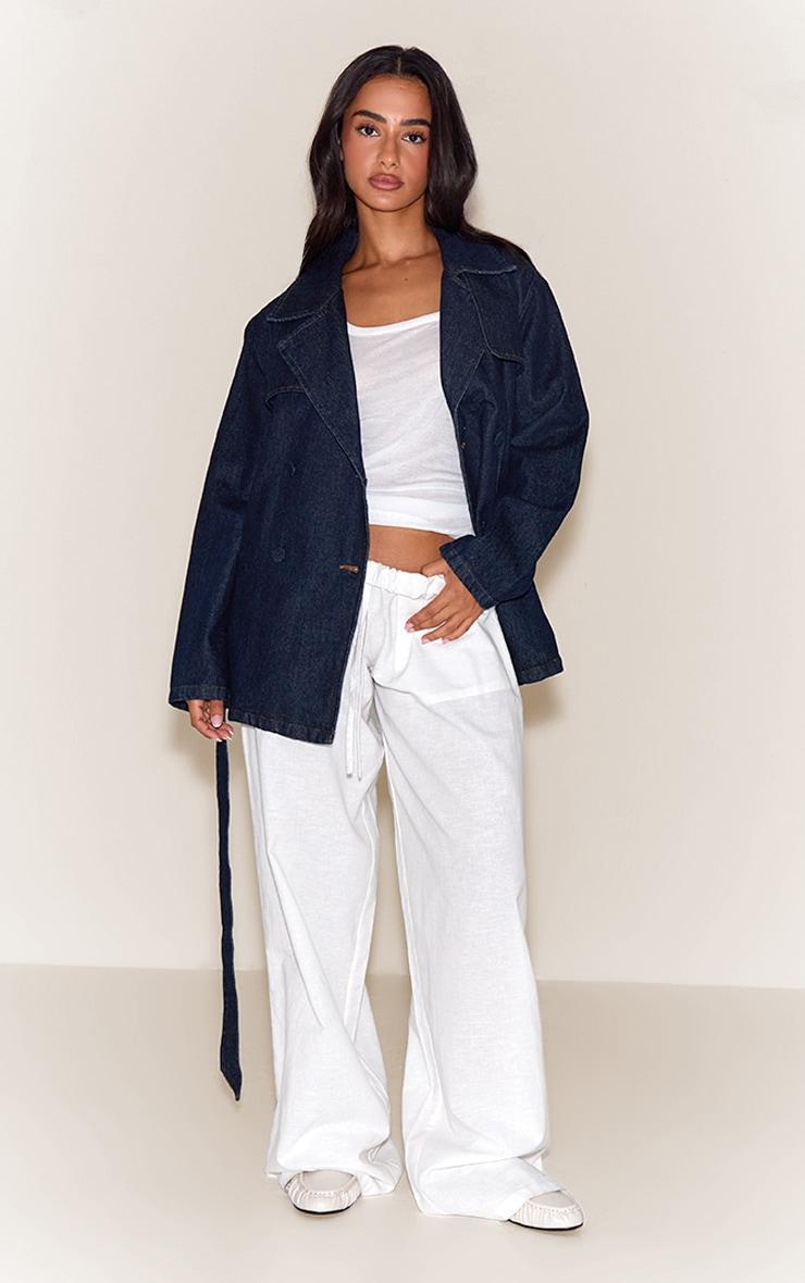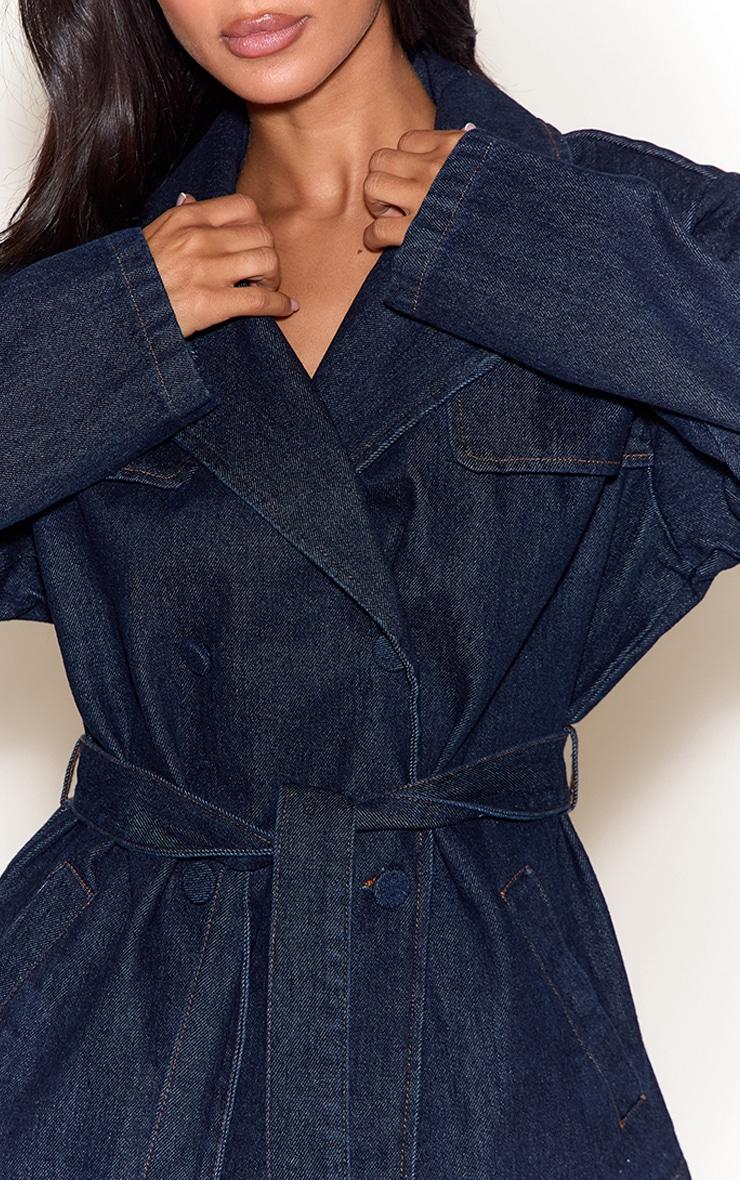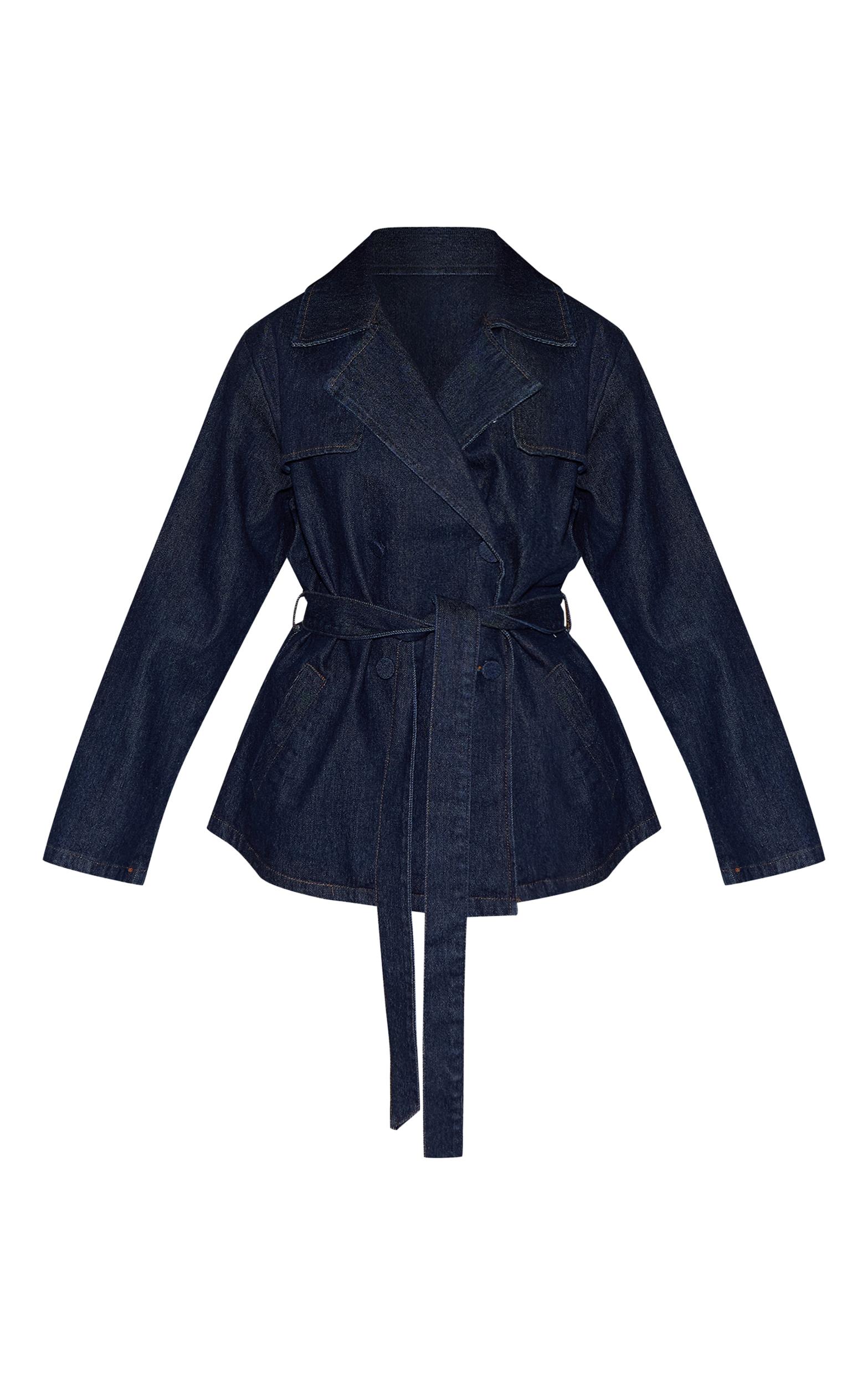Meet the denim essential that reworks classic outerwear. The petite indigo belted cropped denim trench in rich indigo offers a contemporary, relaxed fit with its wide lapels and double-breasted button fastening. Designed to be worn open for an effortless vibe or cinched for a sharper silhouette, its cropped length ensures a modern edge. Team this versatile piece with high-waisted tailored pants and a simple camisole for a confident daytime look, or throw it over a ribbed maxi dress with sneakers for an assured, urban aesthetic.Length approx 68.5cm/27inch (Based on sample size US 2)Model wears size UK 6/ EU 34/ AUS 6/ US 2Model Height - 5ft 2inchp]:!mb-4inch>Brand: PrettyLittleThingCategory: DenimProduct type: Cropped Denim JacketColor: IndigoMaterial: Rigid DenimSleeves: LongOccasion: Day
