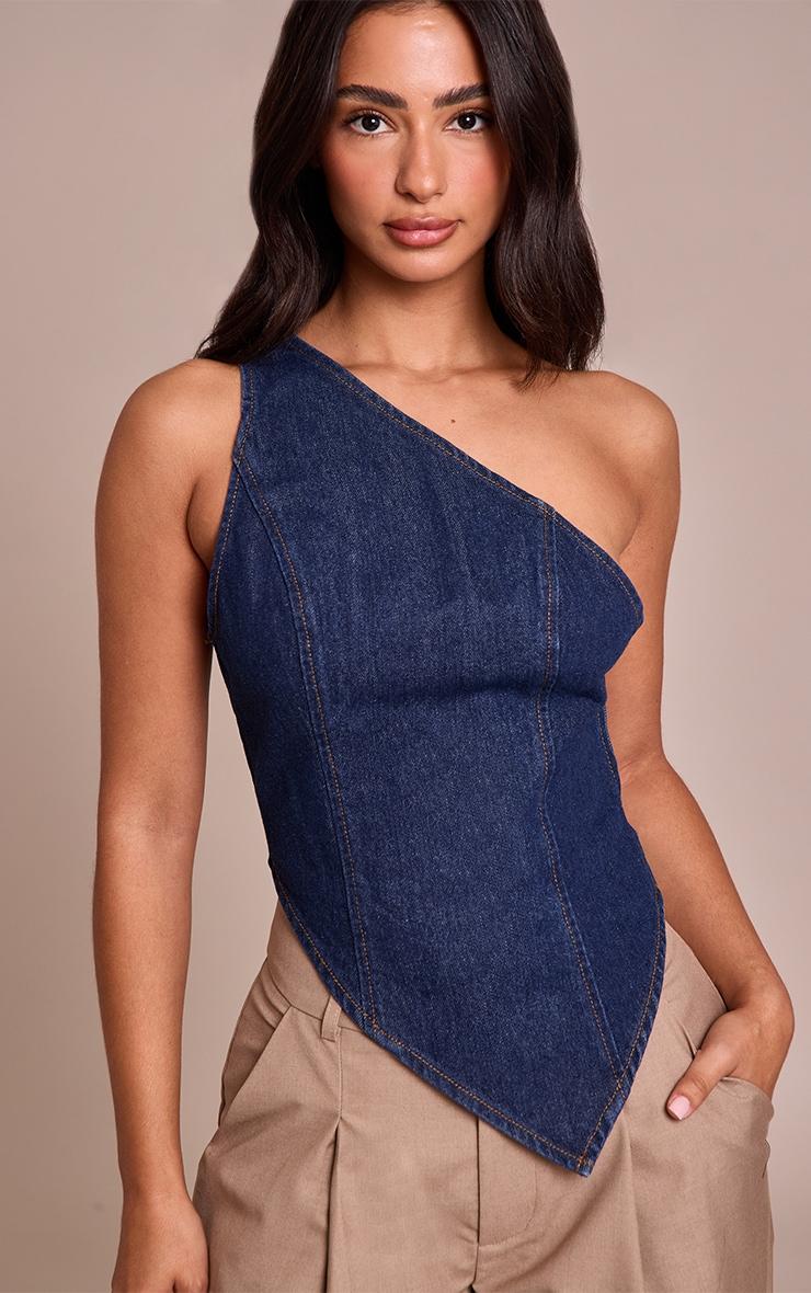 Unleash a directional denim moment. The petite indigo denim asymmetric top cuts an unmistakable silhouette, with its singular shoulder strap flowing into an artful, pointed hem. A discreet side zip ensures a clean line, while the rich indigo blue offers a versatile base for any day look. Style this unique top with high-waisted tailored pants and crisp white kitten heels for a confident, fashion-forward ensemble. Finish the moment with delicate gold jewelry to complement the open neckline, perfecting your effortless style.Length approx 45.5cm/18inch (Based on sample size US 2)Model wears size UK 6/ EU 34/ AUS 6/ US 2Model Height - 5ft 2inchp]:!mb-4inch>Category: DenimProduct type: Denim TopColor: IndigoMaterial: Rigid DenimOccasion: Day