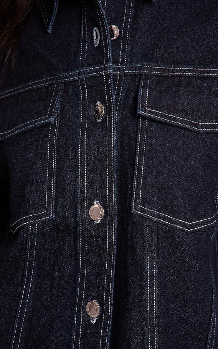 Redefine your everyday denim with the petite indigo seam detail denim shirt jacket, an effortlessly cool piece designed to elevate your casual rotations. Its indigo wash is perfectly offset by striking white contrast seam detailing, creating a structured yet relaxed silhouette. Featuring a sharp collared neckline and a full button-up front with distinctive silver-tone fastenings, alongside twin chest pockets, this shirt jacket embodies considered design. Style it solo with matching wide-leg pants for a cohesive two piece set, or wear it open over a basic top and straight-leg jeans for a layered vibe. Complete the ensemble with chunky boots for an assured finish, adding a statement gold ring to catch the light. Embrace a confident, put-together aesthetic that speaks volumes.Length approx 45.5cm/18inch (Based on sample size US 2)Model wears size UK 6/ EU 34/ AUS 6/ US 2Model Height - 5ft 2inchp]:!mb-4inch>Category: DenimProduct type: Denim JacketColor: IndigoMaterial: Rigid DenimOccasion: Day