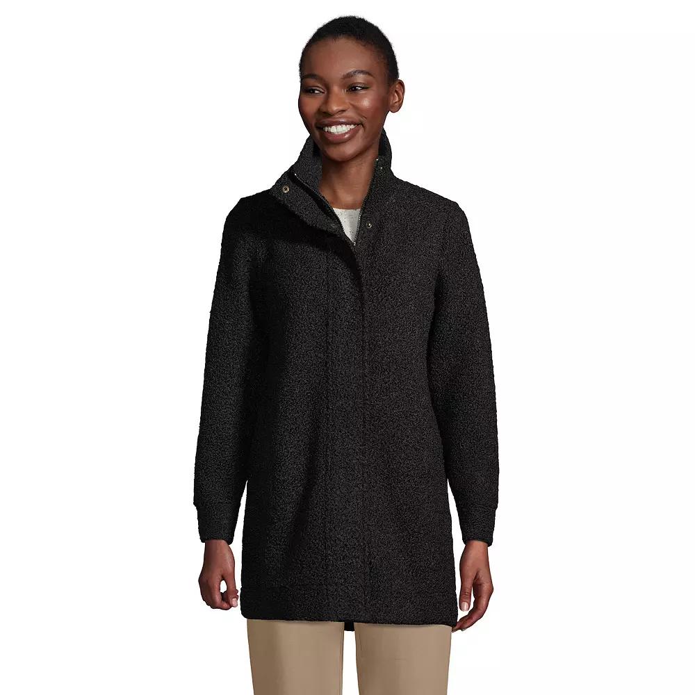 You'll love the sleek, yet snuggly style of this petites' Lands' End boucle fleece coat. Click on this WOMEN'S GUIDE to find the perfect fit and more! - https://www.kohls.com/feature/womens-fit-guide.jsp. Cozy boucle fleece construction, Raised snap collar, Hidden placket with snap and zipper closure, Long sleeves, 2 pockets, No Hood. FIT & SIZING: Designed to hit above the knees, Midweight. FABRIC & CARE: Polyester, Machine wash, Imported. Size: XL Petite. Color: Black. Gender: female. Age Group: adult. Material: NONE.