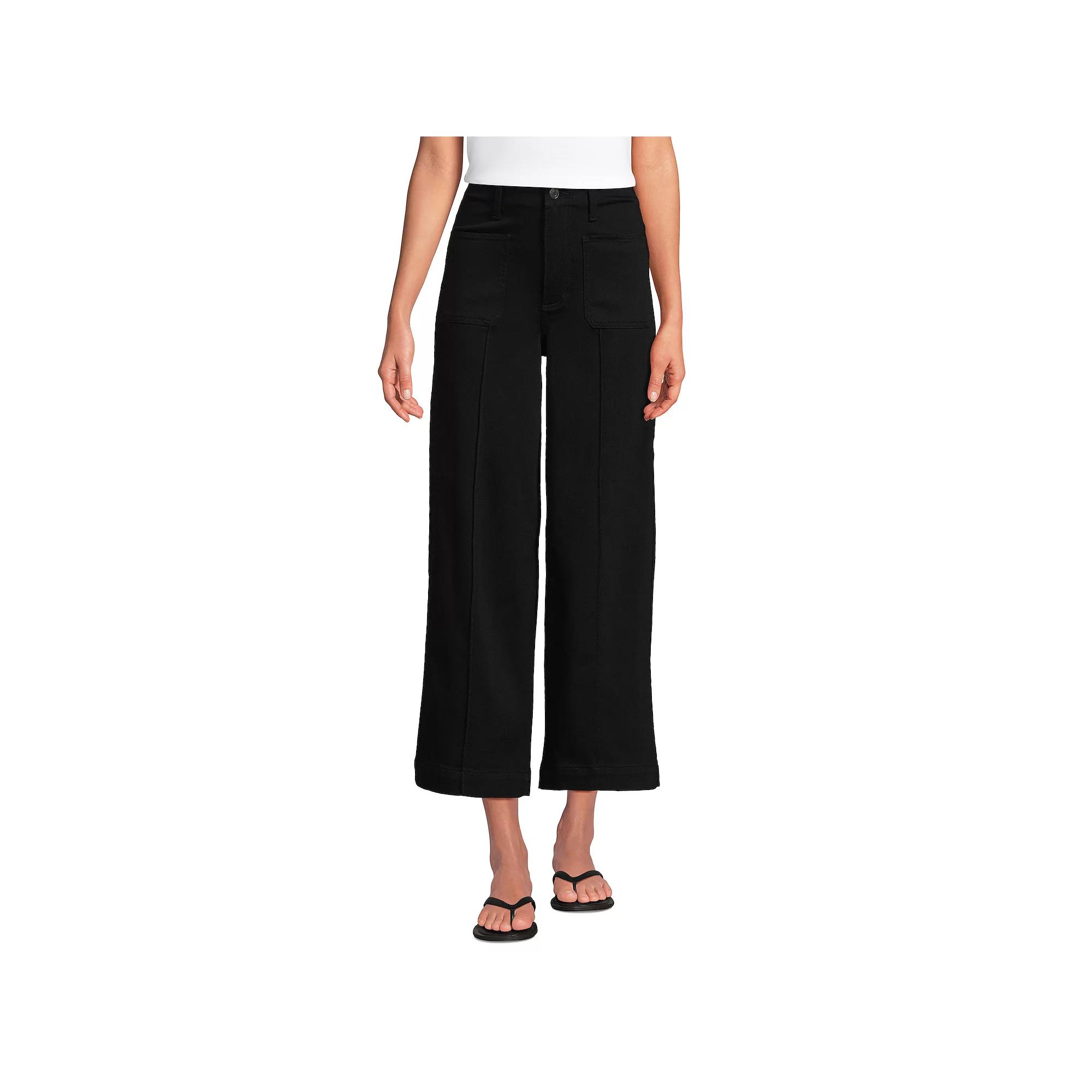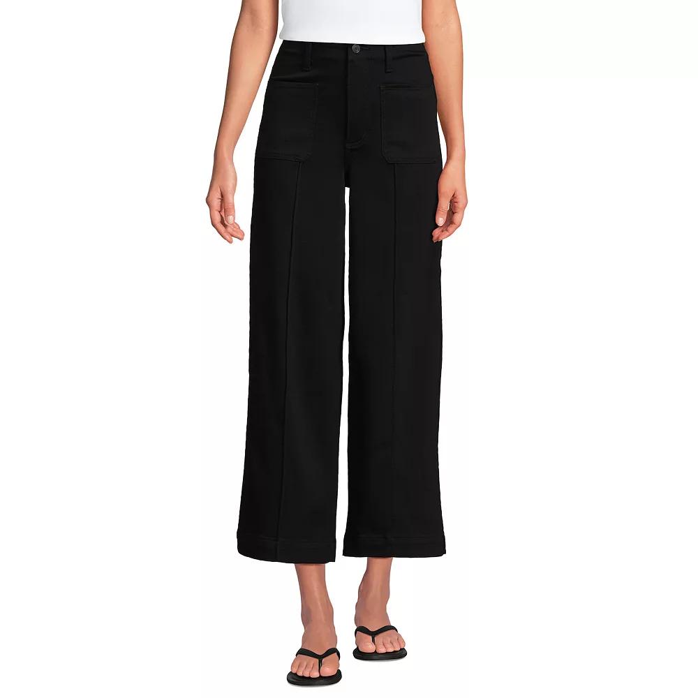 Elevate your everyday wardrobe with these effortlessly chic cropped jeans from Lands' End. With a flattering high rise and modern wide leg silhouette, they offer stylish versatility, transitioning seamlessly from casual outings to dressier occasions with ease. Click on this WOMEN'S GUIDE to find the perfect fit and more! - https://www.kohls.com/feature/womens-fit-guide.jsp. FEATURES: Denim with a hint of stretch, Two front patch pockets and two back welt pockets, Button & zip fly, plus belt loops, Front pintucks add polish, High rise sits at the natural waist, Wider leg silhouette adds volume, Cropped inseams: Regular 26"; Petite 23.5"; Tall 28"; Plus 26", Effortless shape, polished finish, Made from soft stretch denim, Crisp front pintucks, patch and welt pockets, Clean cropped length that works with everything from flats to heeled sandals. FIT & SIZE: Petite short: 23 1/2-in inseam, Short: 26-in inseam, Long/tall (T/L): 28-in inseam, 26-in leg opening, High rise sits below the natural waistline, Modern wider leg, Relaxed fit through the hip and thigh, Vented hem, Women's Petite. DETAILS: Button & zipper closure, Imported. MATERIAL & CARE: 72% cotton, 27% polyester, 1% spandex, Machine wash, Denim construction. Size: 16. Color: Black. Gender: female. Age Group: adult. Material: COTTON BLEND.