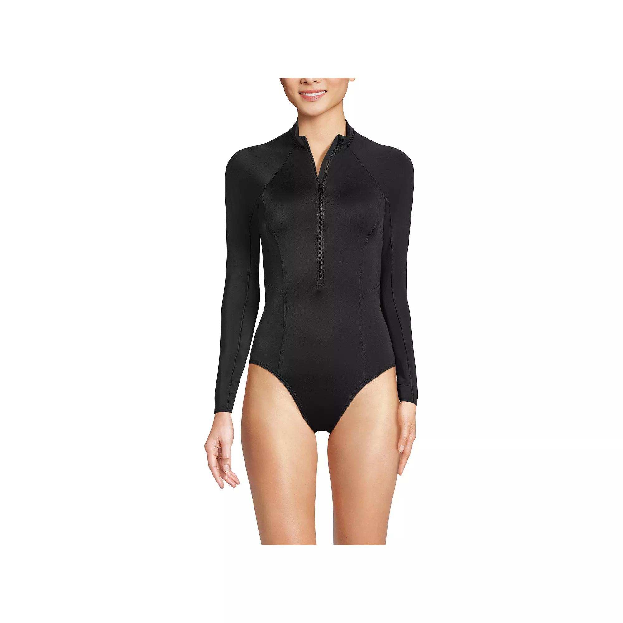 Whether you're working out in the pool, or lounging next to it, you'll love the lasting fit and feel of this women's Lands' End O-Ring Monokini One-Piece Swimsuit. Click on this WOMEN'S GUIDE to find the perfect fit and more! - https://www.kohls.com/feature/womens-fit-guide.jsp. FEATURES: V-neck, Sleeveless, Soft bra cups, Jersey knit construction, UPF 50 sun protection, Wireless. FIT & SIZING: No closure - pullover styling, Adjustable shoulder straps, Moderate coverage. FABRIC & CARE: Nylon, spandex, Hand wash, Imported. Size: 10 Petite. Color: Black. Gender: female. Age Group: adult. Material: NONE.