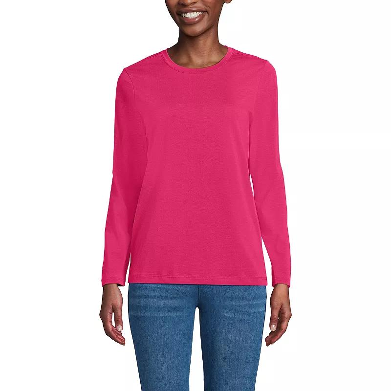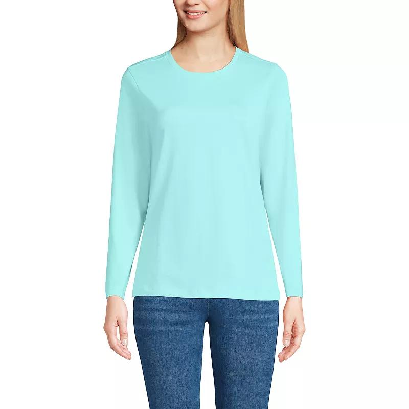 Looking for your new favorite top you can wear just about anywhere all year long? Look no further than the Lands End Womens Relaxed Supima Cotton Long Sleeve Crewneck T-shirt. Made from ultra-soft Supima cotton this t-shirt is light and breathable. Women Womens Clothing - Tops