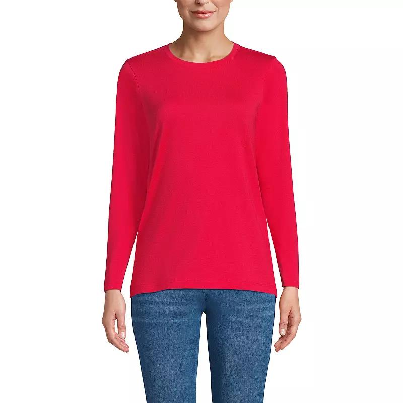 Petite Lands' End Relaxed-Fit Supima Long Sleeve Cotton Crewneck Tee, Women's,  Product Image