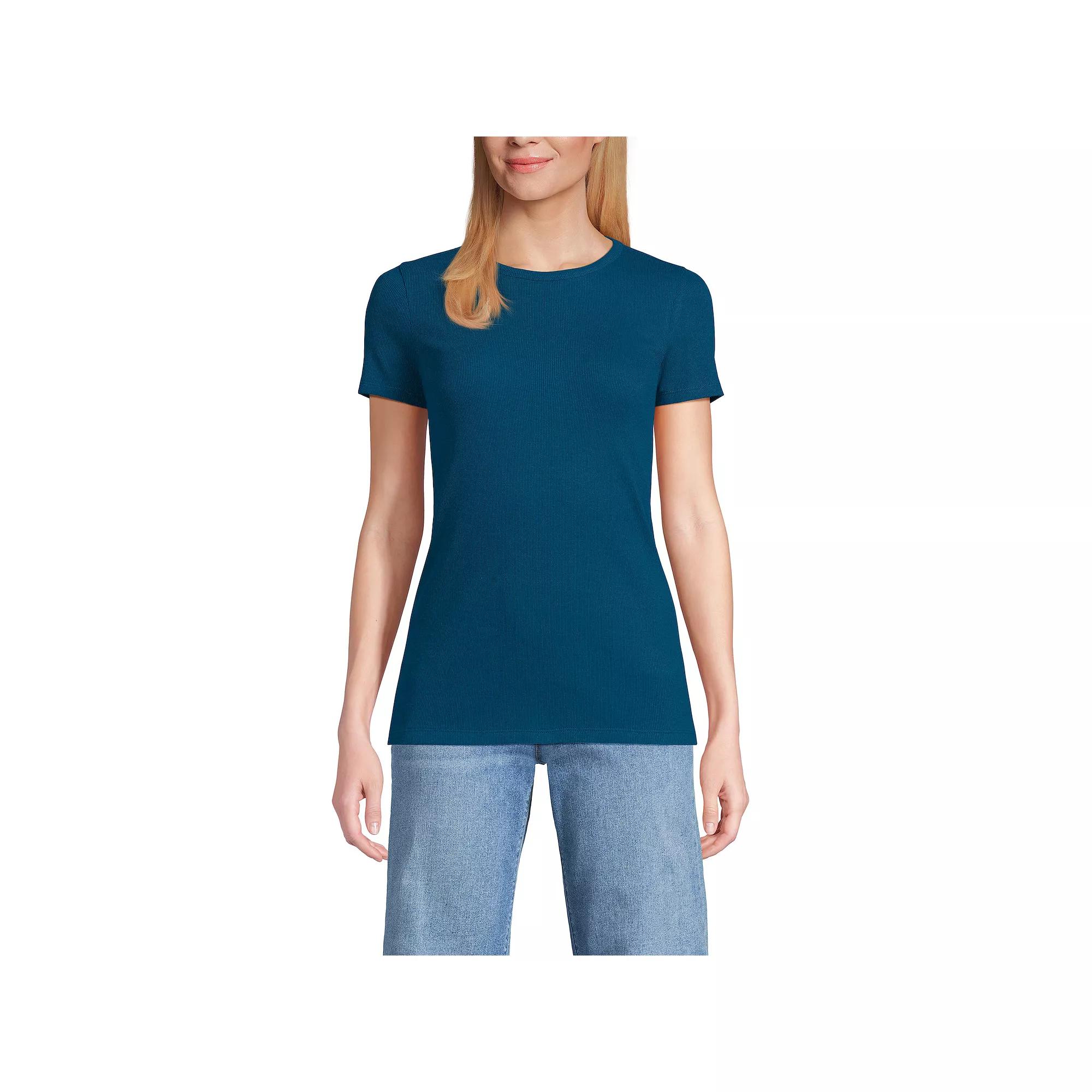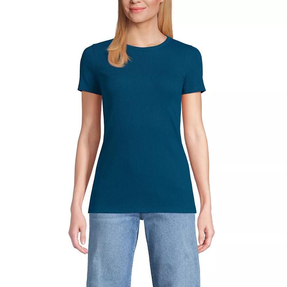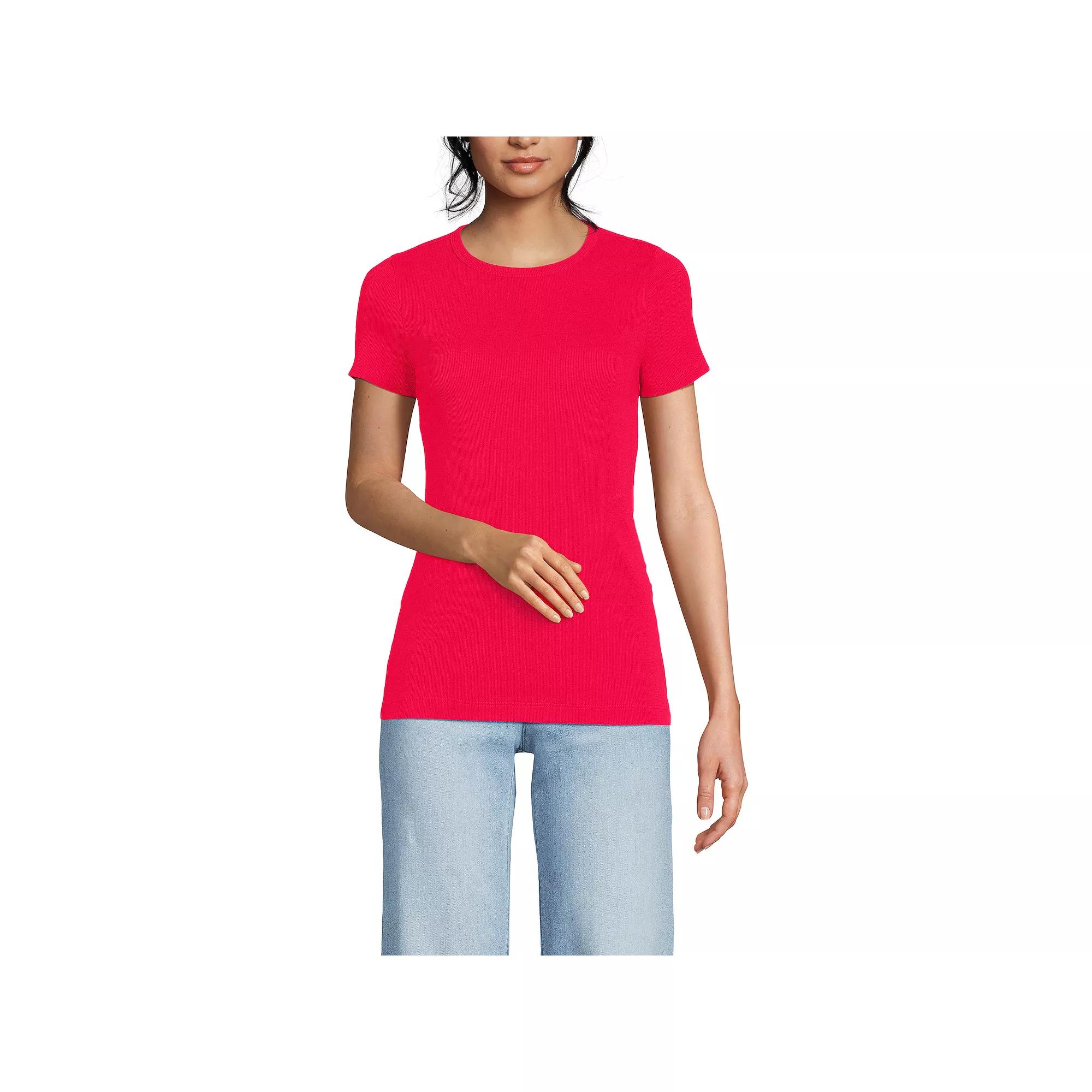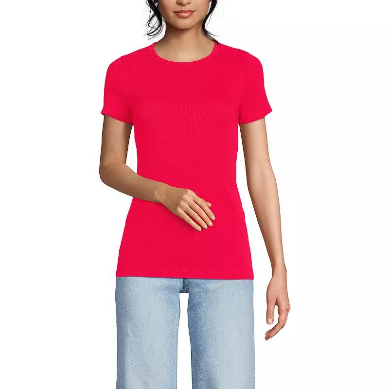 You'll love the essential style of this Short Sleeve Micro Rib Crewneck T-Shirt from Lands' End. Click on this WOMEN'S GUIDE to find the perfect fit and more! - https://www.kohls.com/feature/womens-fit-guide.jsp. FEATURES: Crewneck, Short sleeves, Ribbed, stretchy, soft construction, No closure - pullover styling. FIT & SIZING: 25 1/2-in. length from shoulder to hem. FABRIC & CARE: Cotton, spandex, Machine wash, Imported. Size: S Petite. Color: Berry Rouge. Gender: female. Age Group: adult. Material: OTHER MATERIAL.