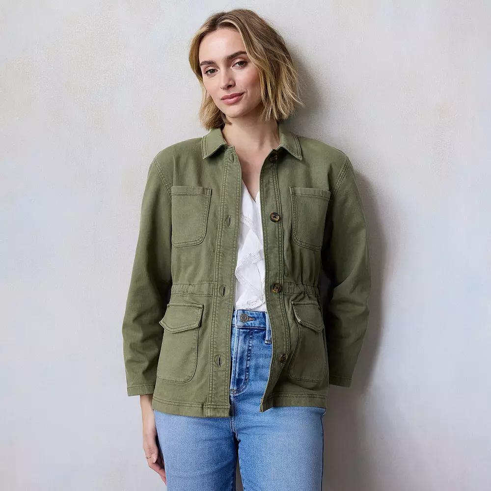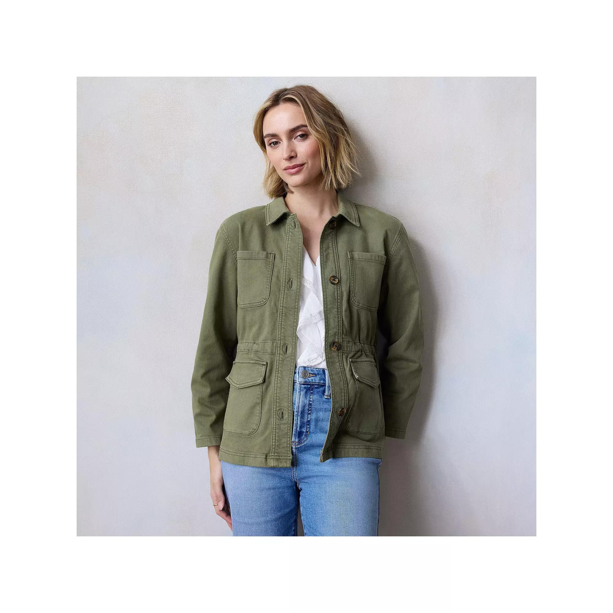 This stylish women's LC Lauren Conrad cinched-waist cargo jacket is sure to quickly become a go-to fashion staple in your wardrobe.Click on this WOMEN'S GUIDE to find the perfect fit and more!This stylish women's LC Lauren Conrad cinched-waist cargo jacket is sure to quickly become a go-to fashion staple in your wardrobe.Click on this WOMEN'S GUIDE to find the perfect fit and more!FEATURES Button front closure Long, roll-tab sleeves Button cuffs 4 functional pockets Cinched waist Rounded hem Soft stretch twill construction UnlinedFIT & SIZING Regular fit 17-in. length from shoulder to hemFABRIC & CARE Cotton, lyocell, spandex Machine wash and tumble dry low ImportedRESPONSIBLE Supports more sustainable cotton farming Tested for harmful substances STANDARD 100 by OEKO-TEX® CERTIFIED Certification No. 2017OK1349 Testing Institute: AITEX® www.oeko-tex.com/standard100 Size: XXL Petite. Color: Addison Olive. Gender: female. Age Group: adult. Material: Cotton Blend.