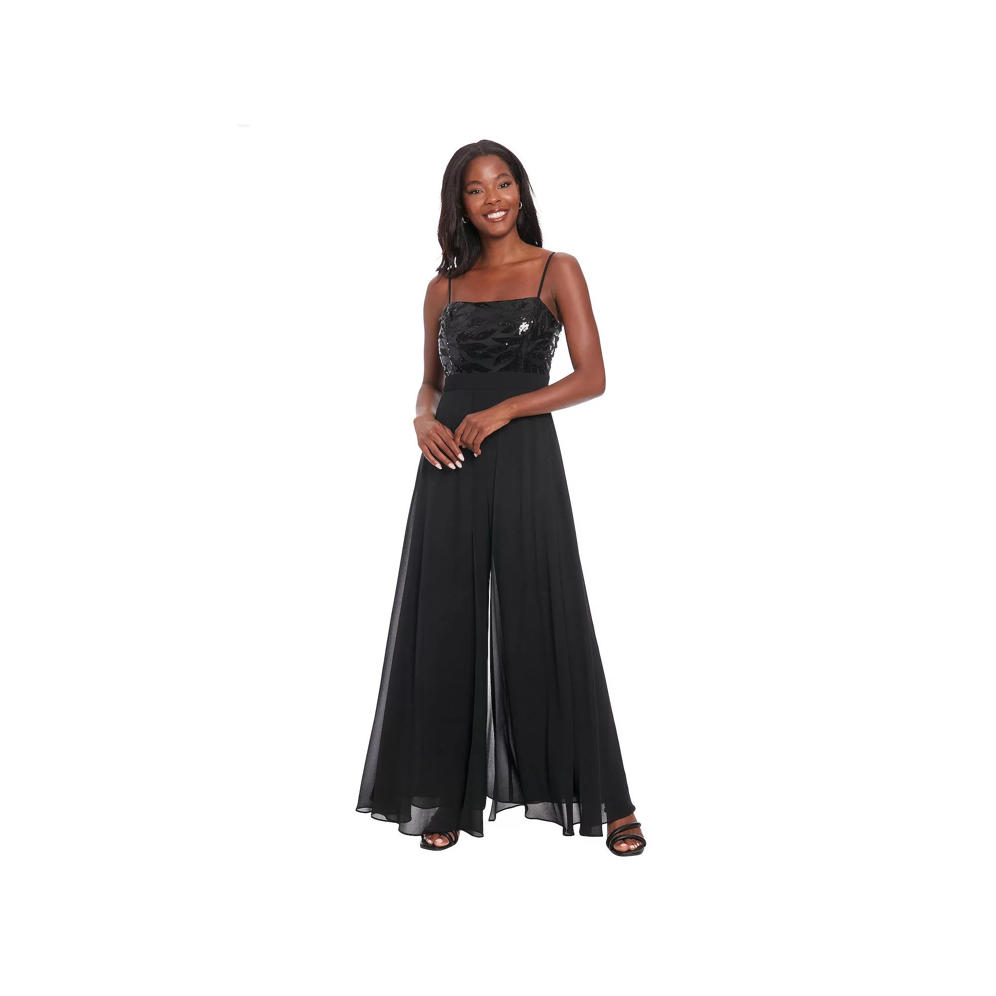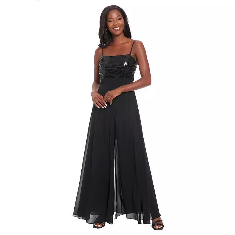 Upgrade your dress collection with this stylish Womens London Times Sequin Bodice Jumpsuit.Click on this WOMENS GUIDE to find the perfect fit and more! Upgrade your dress collection with this stylish Womens London Times Sequin Bodice Jumpsuit.Click on this WOMENS GUIDE to find the perfect fit and more! FEATURES Squareneck Sleeveless Zipper back Souffle crepe chiffon construction Straight hem Fully linedFIT & SIZING Fitted bodice, flowy leg 48-in. length from shoulder to hem 26 1/2-in. inseam 26-in. leg opening Wide leg openingFABRIC & CARE Polyester Dry clean Imported Size: 16. Color: Black. Gender: female. Age Group: adult.