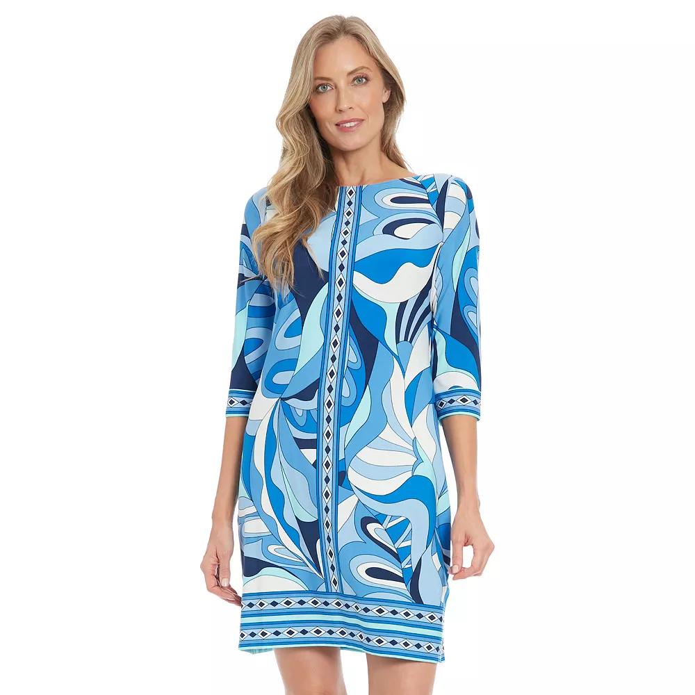 Elevate your dress collection with this Womens London Times 3/4 Sleeve Shift Dress.Click on this WOMENS GUIDE to find the perfect fit and more! Elevate your dress collection with this Womens London Times 3/4 Sleeve Shift Dress.Click on this WOMENS GUIDE to find the perfect fit and more! FEATURES Crewneck 3/4-length sleeves Abstract retro print Shift silhouette Matte jersey construction Straight hem No closure - pullover stylingFIT & SIZING 37 1/4-in. length from shoulder to hem Mini length hits at the thighFABRIC & CARE Polyester, spandex Machine wash and tumble dry low Imported Size: Large. Color: Peri Blue Team. Gender: female. Age Group: adult.