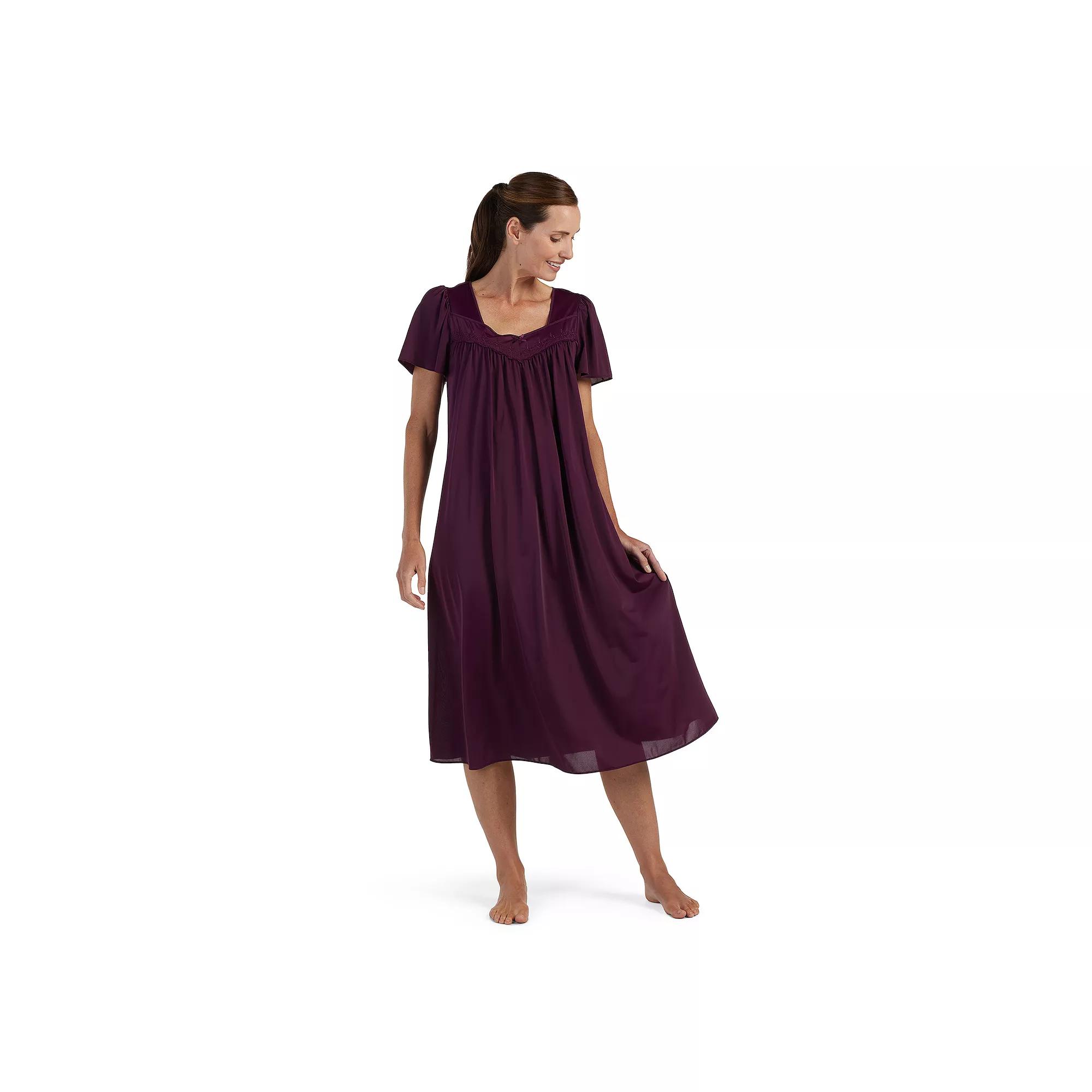Enjoy the comfortable feel of this women's petite Miss Elaine Essentials tricot long gown with flutter sleeves. Click on this INTIMATES & SLEEPWEAR GUIDE to find the perfect fit and more!Enjoy the comfortable feel of this women's petite Miss Elaine Essentials tricot long gown with flutter sleeves. Click on this INTIMATES & SLEEPWEAR GUIDE to find the perfect fit and more!FEATURES Short sleeves Embroidery trim at neckline Lightweight Pullover stylingFIT & SIZING 48-in. length from shoulder to hem Loose fitFABRIC & CARE Nylon Machine wash Imported Size: L Petite. Color: Egg Plant. Gender: female. Age Group: adult.