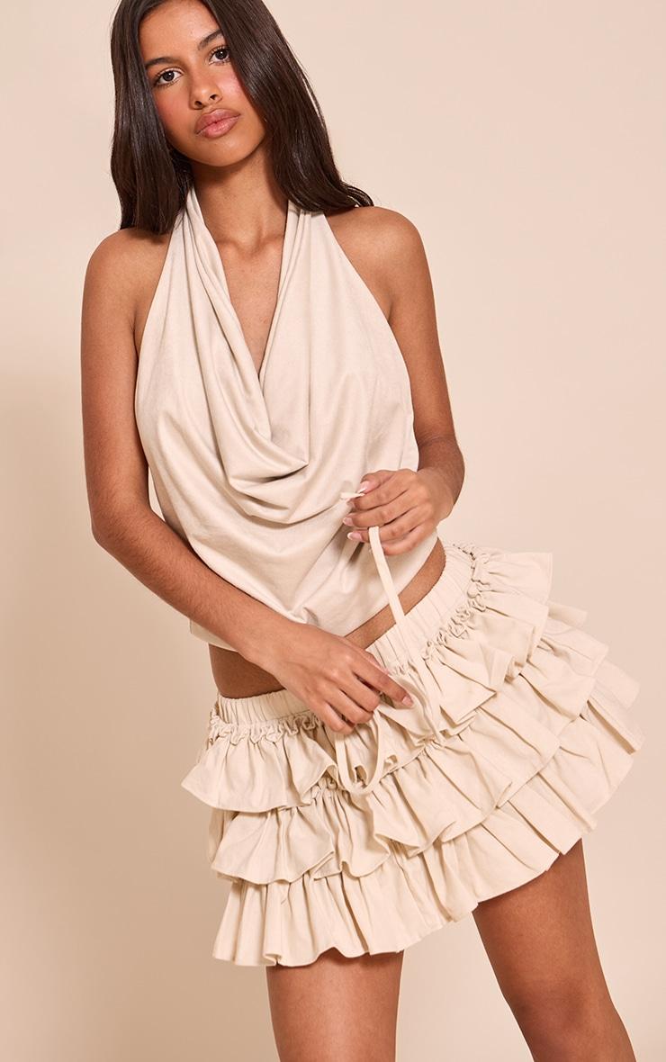 Stay cute in this petite oatmeal linen look contrast rara mini skirt. Crafted from a soft oatmeal linen look material with a contrast design and rara hem. Style with a simple crop top and sandals to finish your ‘fit.Length approx 33cm/13inch (Based on sample size US 2)Model wears size UK 6/ EU 34/ AUS 6/ US 2Model Height - 5ft 3inchp]:!mb-4inch>Brand: PrettyLittleThingCategory: BottomsProduct type: Mini SkirtColor: Oatmeal Material: Faux LinenDesign: PlainOccasion: Day
