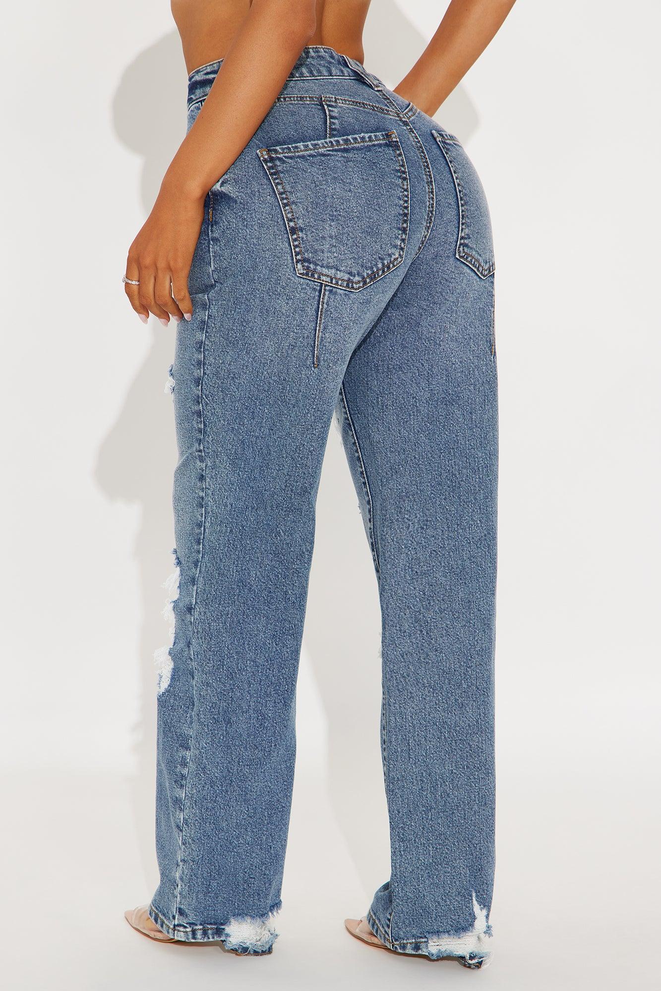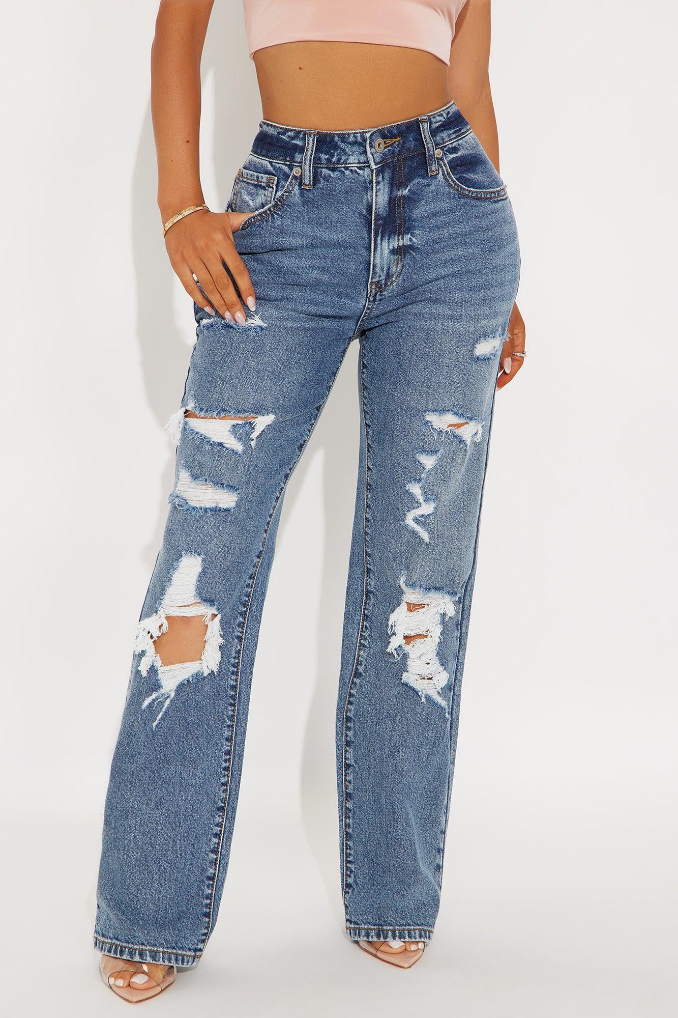 Available In Medium Wash. Available in Petite 30” Inseam , Regular 33" Inseam Straight Leg Jean 5 Pockets Ripped 11" High Rise 30" Inseam Medium Stretch 99% Cotton 1% Spandex Imported California Proposition 65WARNING: Cancer and Reproductive Harm - www.P65Warnings.ca.gov.