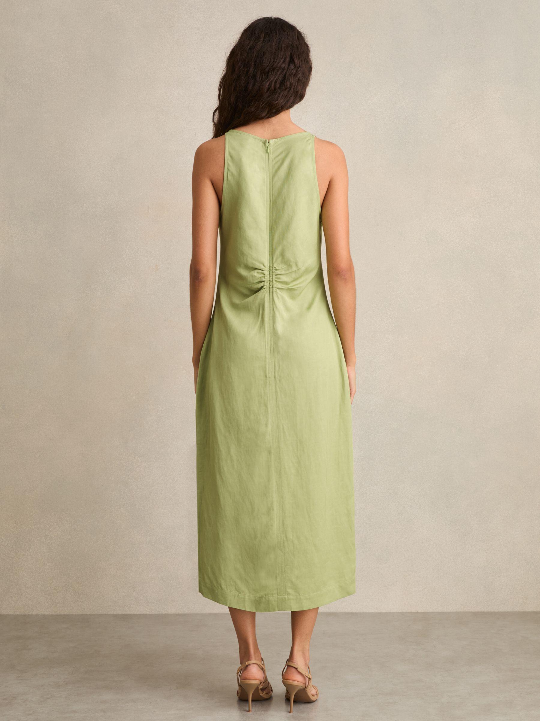 The Pari dress embraces warm-weather dressing with a refined, minimalist silhouette. Subtle front ruching adds texture, while a linen-infused fabrication ensures a lightweight, breathable feel. Crafted with linen. Ruching detail. V-Neckline. Concealed zip to reverse. Midi length.