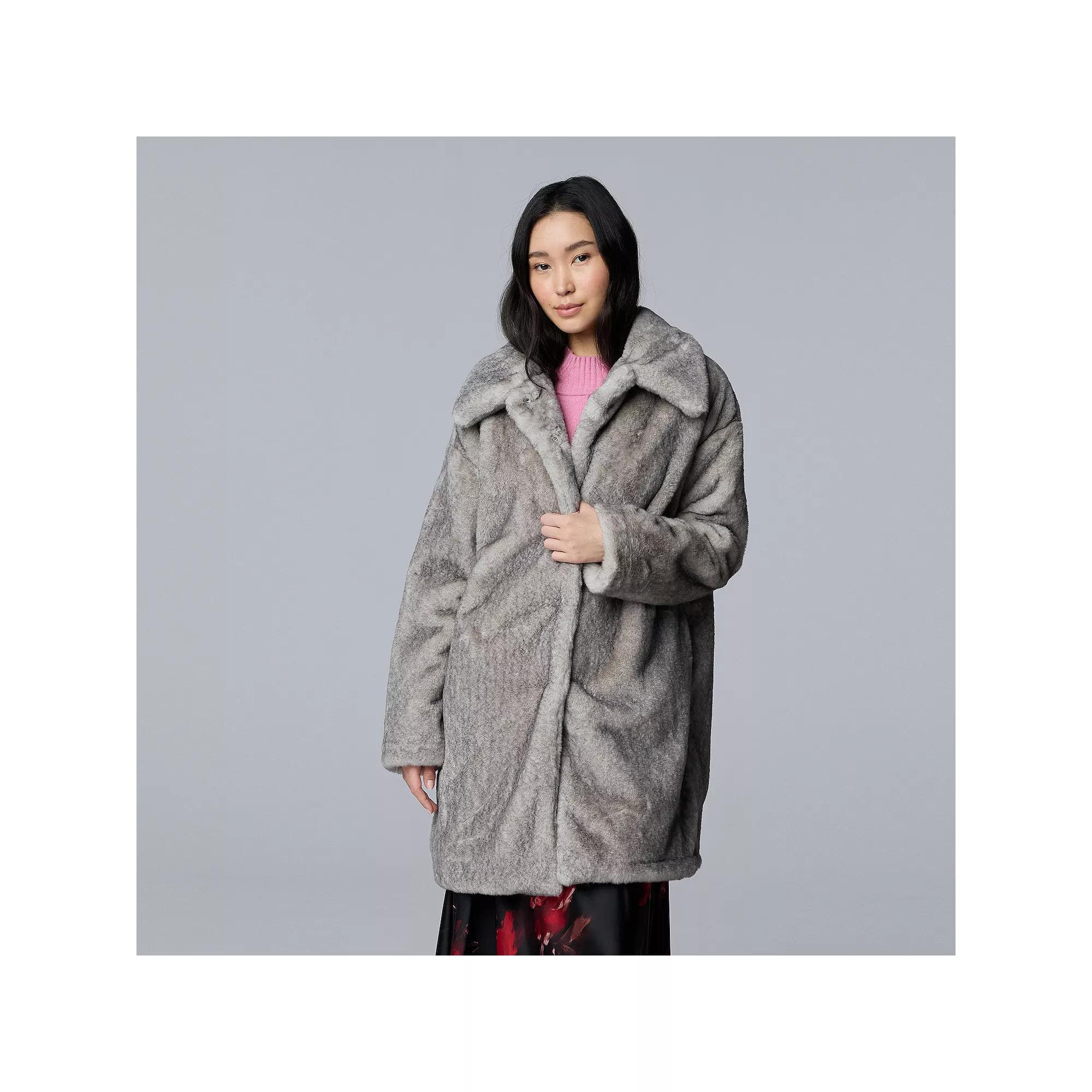 Stay effortlessly chic and cozy when the temperatures drop with this fabulous faux fur coat. Designed by Simply Vera Vera Wang, it's like wrapping yourself in a warm hug, perfect for those outings where style and comfort are equally important. Click on this WOMEN'S GUIDE to find the perfect fit and more! - https://www.kohls.com/feature/womens-fit-guide.jsp. FEATURES: Stylish oversized silhouette, Soft, plush texture for comfort, Classic collar design for added warmth. FIT & SIZE: Regular fit, 34 1/2-in. length from shoulder to hem. DETAILS: Snap front closure, Long sleeves, Set-in sleeves, 2 functional pockets at the side, Imported. MATERIAL & CARE: Polyester, Lining: polyester, Fully lined, Product contains faux fur, Machine wash. Size: L Petite. Color: Two Tone Grey. Gender: female. Age Group: adult. Material: POLY BLEND.