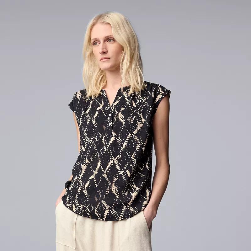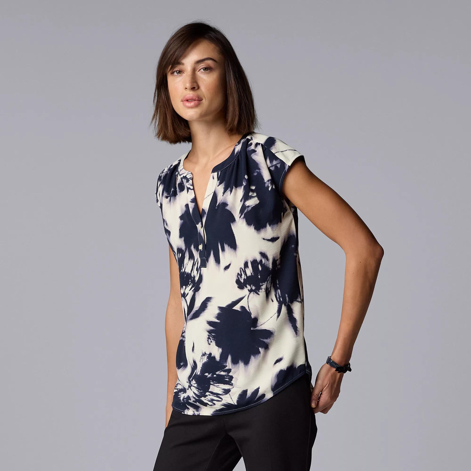 Update your wardrobe with this womens Simply Vera Vera Wang short sleeve dolman popover top. Click on this WOMENS GUIDE to find the perfect fit and more!Update your wardrobe with this womens Simply Vera Vera Wang short sleeve dolman popover top. Click on this WOMENS GUIDE to find the perfect fit and more!FEATURES Gauze construction Shirttail hem Button front Short dolman sleeves Y-neckFIT & SIZING 27-in. length from shoulder to hemFABRIC & CARE Polyester Machine wash Imported Size: M Petite. Color: Beige Navy Floral. Gender: female. Age Group: adult.