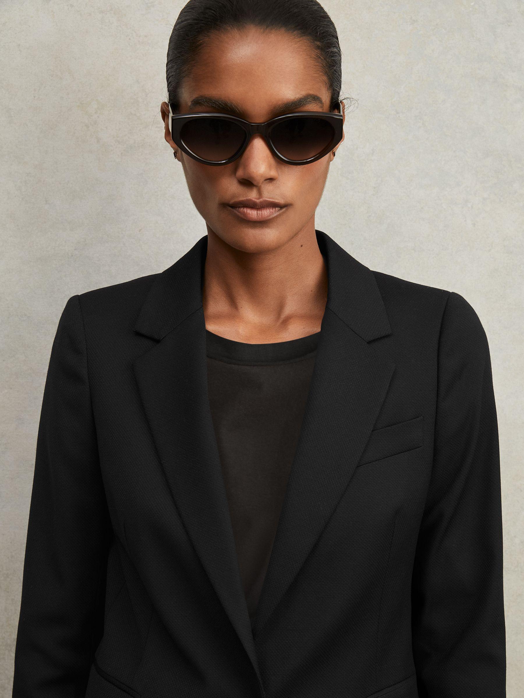 Upgrade your workwear options with the Haisley suit blazer, blended with premium wool yarns for soft and comfortable wear. It's engineered with notch lapels and a single-breasted silhouette. Layer over a white blouse and pair with the coordinating trousers for a monochrome edit. Wool blend. Notch lapels. Lightly padded shoulders. Single-breasted design. Single button closure. Flap pockets. Jetted pocket to chest. Buttoned cuffs. Single vent to reverse Lined.