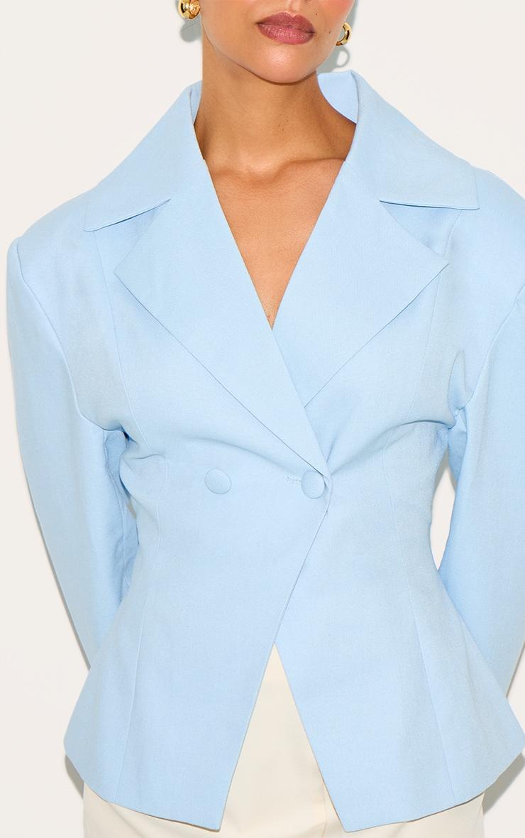 Brighten up your look in this petite sky blue fitted blazer. Tailored to perfection, this blazer features an understated button fastening with a classic blazer design. Level up the look by teaming it with a white mini skirt, kitten heels and your favorite jewelry.Length approx 45.5cm/18inch (Based on sample size US 2)Model wears size UK 6/ EU 34/ AUS 6/ US 2Model Height - 5ft 4inchp]:!mb-4inch>Brand: PrettyLittleThingCategory: OuterwearProduct type: Fitted BlazerColor: Sky BlueMaterial: Woven CrepeDesign: PlainNeckline: ShirtSleeves: LongOccasion: Day