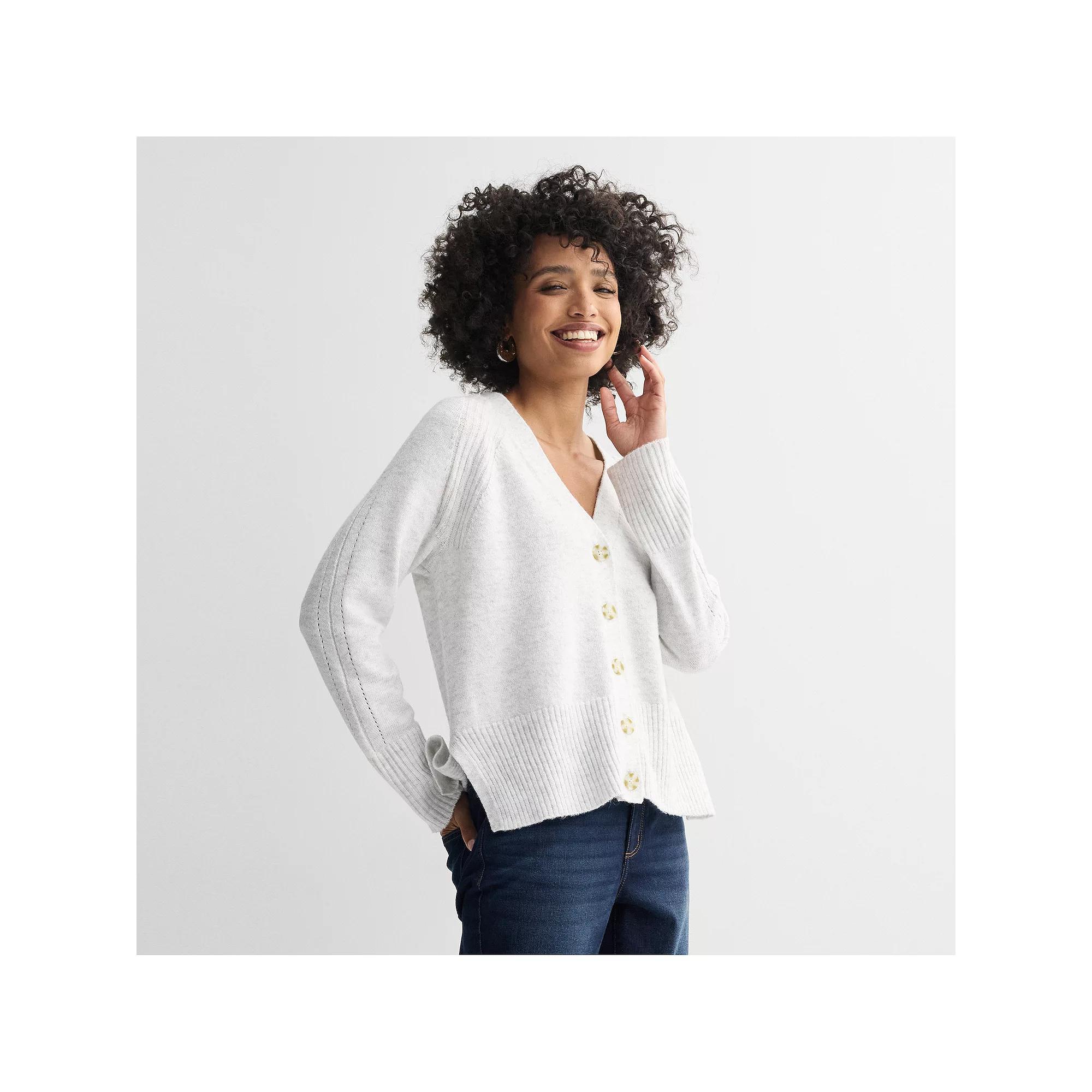 Elevate your everyday style with this lightweight longline cardigan from Sonoma Goods For Life. Perfect for layering, it offers effortless versatility for anything from cozy weekends at home to casual outings with friends. Click on this WOMEN'S GUIDE to find the perfect fit and more! - https://www.kohls.com/feature/womens-fit-guide.jsp. FEATURES: Lightweight sweater: A breezy essential with an easy fit, ideal for mild days or indoor comfort., Longline silhouette for a stylish look. FIT & SIZE: 23 3/4-in. length from shoulder to hem, Women's Petite. DETAILS: V-neck neckline, Long sleeves with ribbed cuffs, Button front closure, Raglan sleeves, Imported. MATERIAL & CARE: 85% recycled polyester, 13% viscose, 2% spandex, Machine wash delicate. Color: Gray. Gender: female. Age Group: adult. Material: CASHMERE BLEND.