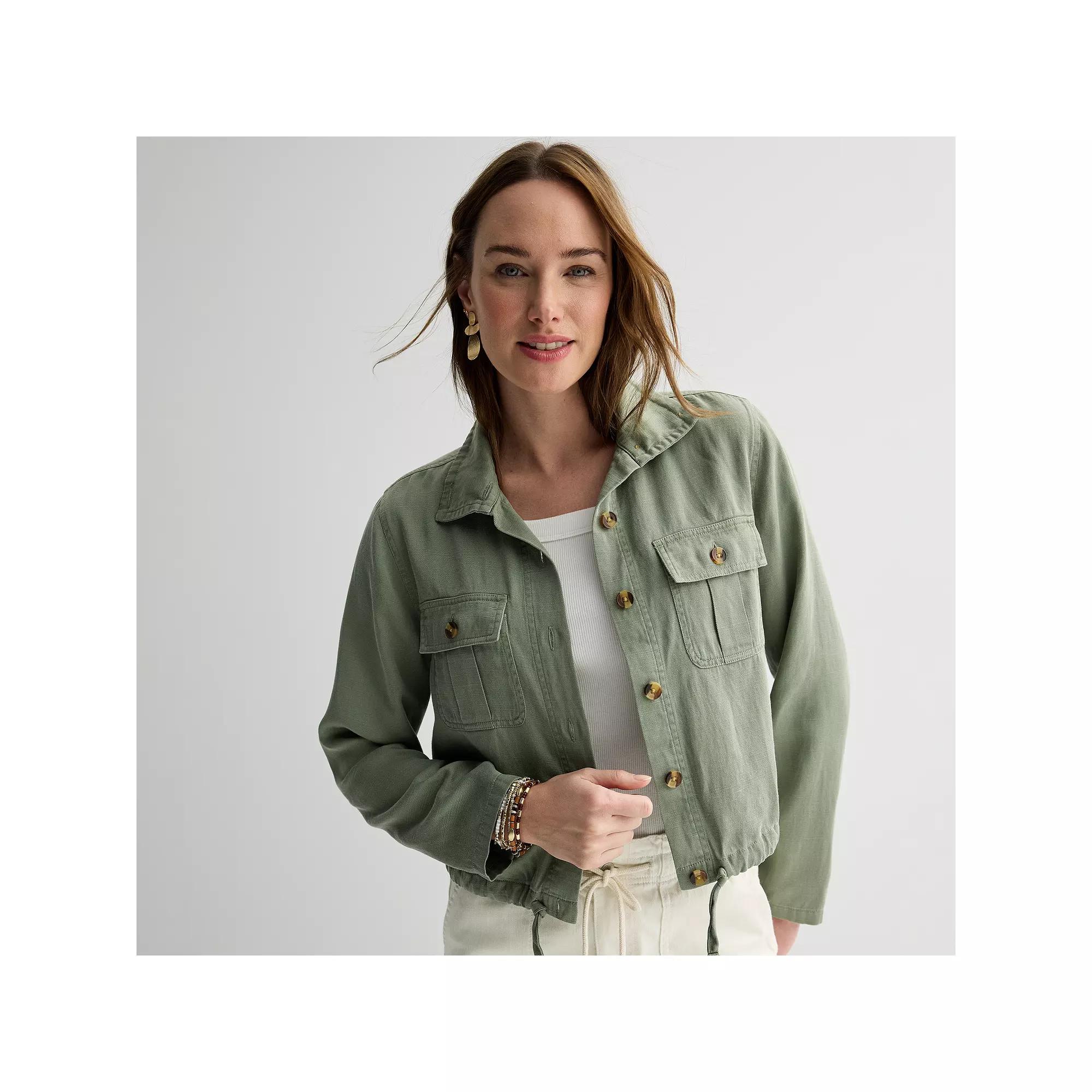 Stay ahead of trends with this stylish petite Sonoma Goods For Life summer jacket. Click on this WOMEN'S GUIDE to find the perfect fit and more!Stay ahead of trends with this stylish petite Sonoma Goods For Life summer jacket. Click on this WOMEN'S GUIDE to find the perfect fit and more!FEATURES Long sleeves Drawstring hem Two functional front pockets Button closureFIT & SIZING Loose fit 19 3/4-in. length from shoulder to hemFABRIC & CARE Lyocell, rayon, linen Machine wash and tumble dry low Imported Size: L Petite. Color: Madri Green. Gender: female. Age Group: adult.