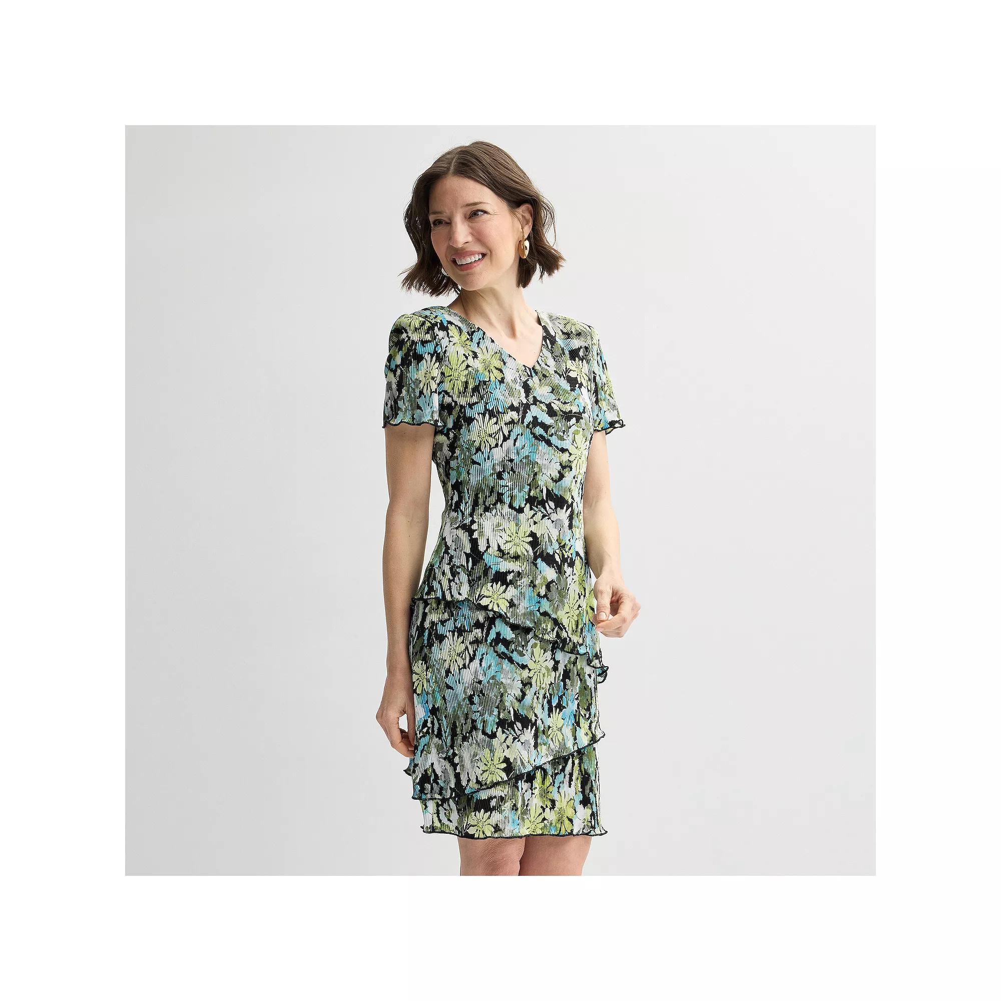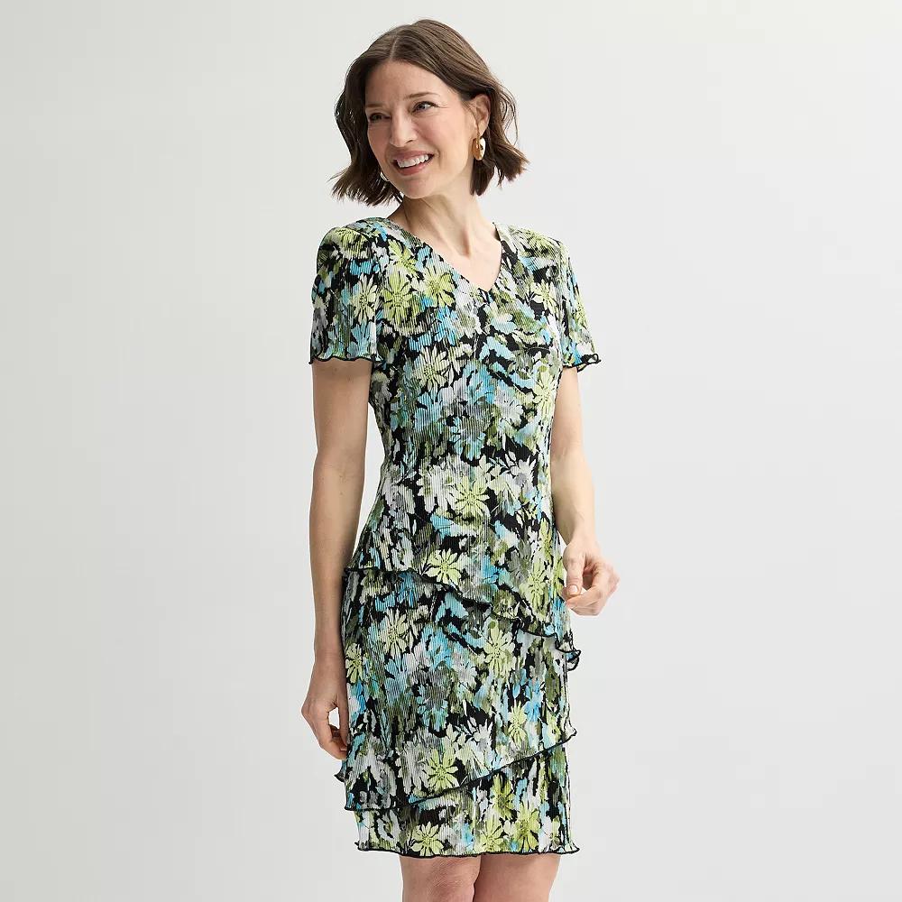 Embrace effortless elegance with the Studio Connection dress, featuring a flattering V-neck and charming short sleeves. The tiered skirt flows beautifully with every movement, making it perfect for casual outings or special gatherings, while the vibrant print adds a touch of playfulness to your wardrobe. Click on this WOMEN'S GUIDE to find the perfect fit and more! - https://www.kohls.com/feature/womens-fit-guide.jsp. FEATURES: No pockets, Straight hem, No closure - pullover styling, Set-in short sleeves, Unlined, V-neck. FIT & SIZING: 37 1/2-in. length from shoulder to hem, Midi length hits below the knee. FABRIC & CARE: Polyester, Hand wash, Imported. Size: 12 Petite. Color: Lime. Gender: female. Age Group: adult. Pattern: printed. Material: KNIT.