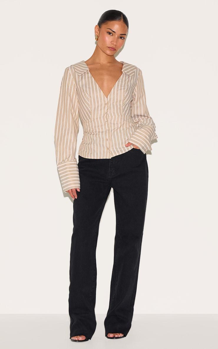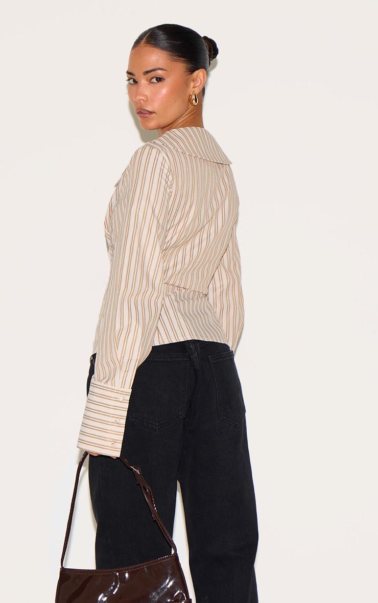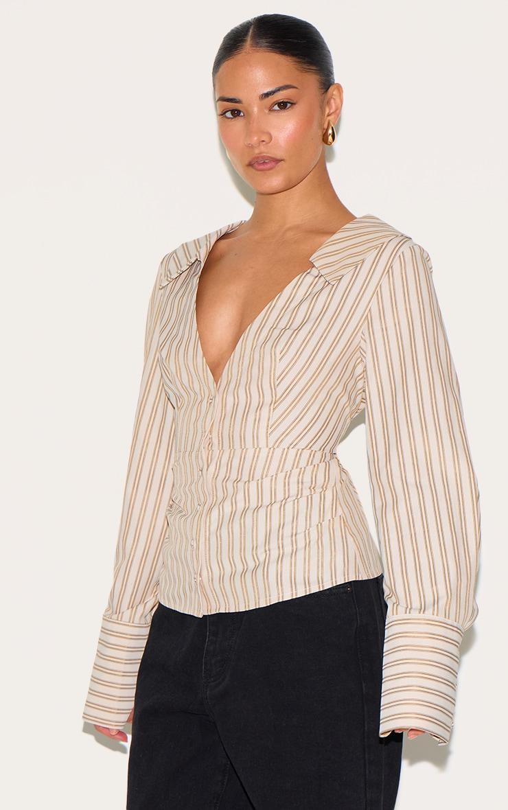 This petite taupe pinstripe shirt is designed to make a statement in your collection. Tailored from a rich taupe material, this piece blends versatility with flair. For an effortlessly chic look, pair with minimal jewelry, dark wash denim and your go-to strappy stiletto heels.Length approx 45.5cm/18inch (Based on sample size US 2)Model wears size UK 6/ EU 34/ AUS 6/ US 2Model Height - 5ft 2inchp]:!mb-4inch>Brand: PrettyLittleThingCategory: TopsProduct type: ShirtColor: TaupeMaterial: Cotton PoplinDesign: PrintNeckline: ShirtSleeves: LongOccasion: Evening