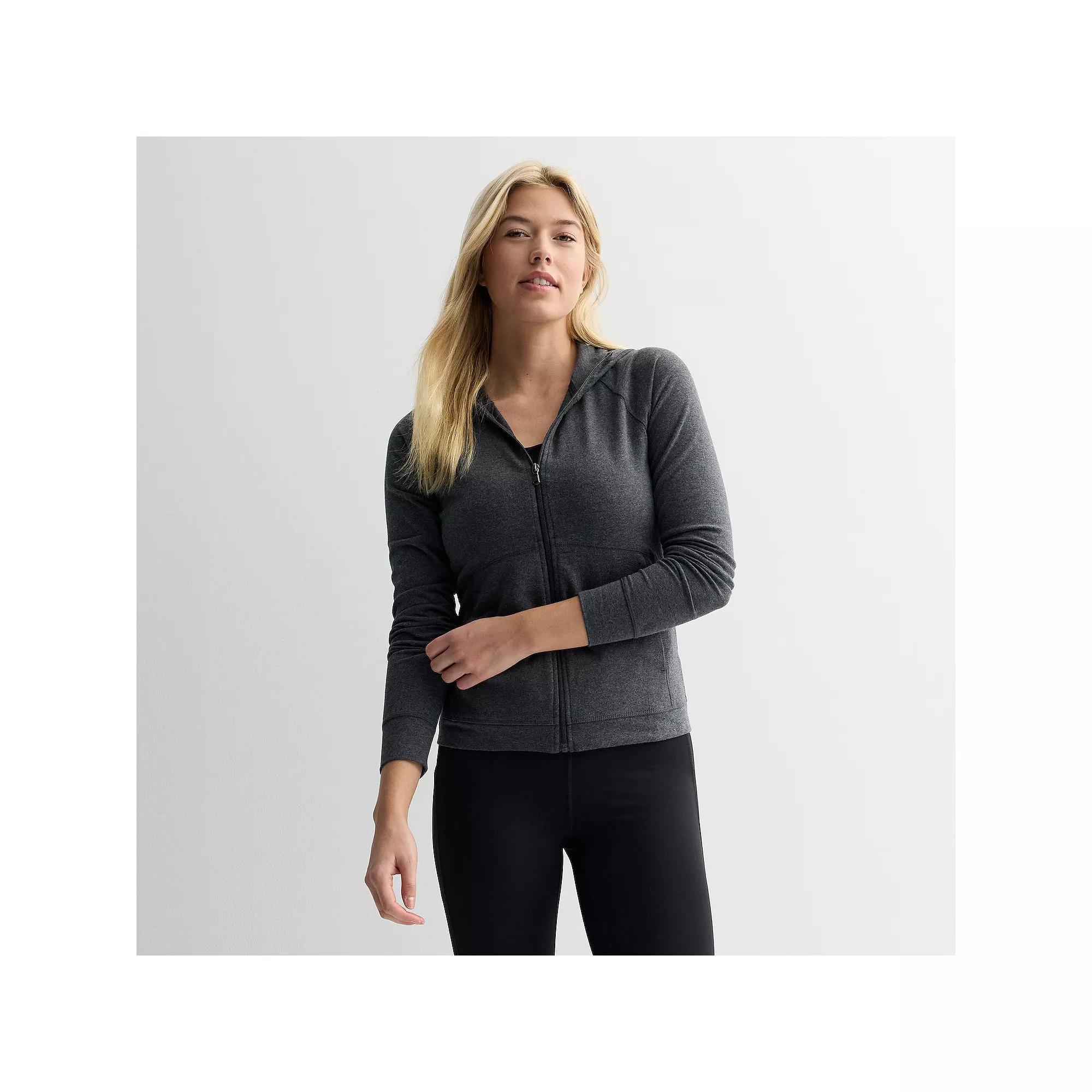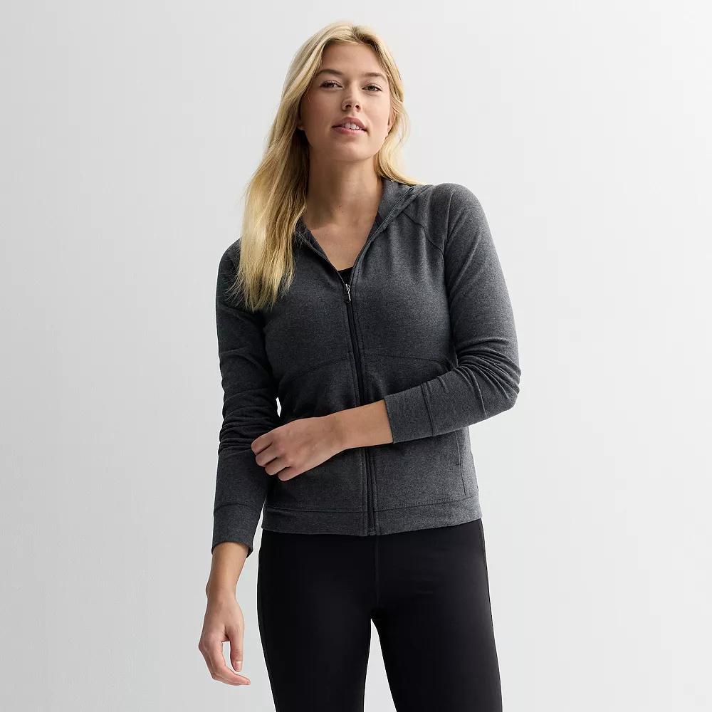 Gear up for whatever life has in store for you with this women's Essential zip-up hooded jacket from Tek Gear. Click on this WOMEN'S GUIDE to find the perfect fit and more! - https://www.kohls.com/feature/womens-fit-guide.jsp. TECHNOLOGIES & FEATURES: Attached hood, Front zipper closure, Long sleeves, Sewn-rolled cuffs, 2 front pockets, Banded hem, Moisture-wicking technology, Soft jersey construction, Unlined. FIT & SIZING: 22 3/4-in. length from shoulders to hem, Regular fit. FABRIC & CARE: Cotton, polyester, spandex, Machine wash, Imported. RESPONSIBLE Supports more sustainable cotton farming. Size: M Petite. Color: Medium Ink Heather. Gender: female. Age Group: adult. Material: OTHER MATERIAL.