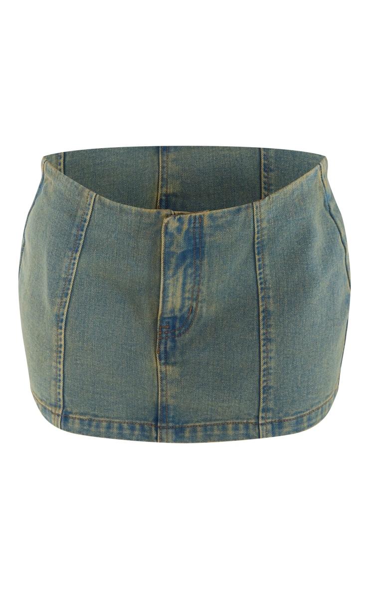 Stay on-trend for the new season and beyond in this petite vintage bleach wash denim micro mini skirt. Brought to you in a vintage bleach wash denim material with a micro mini fit, what more could you need? Style this petite skirt seamlessly with the matching corset and knee length heeled boots for a fierce double denim look we just can't get enough of right now. Length approx 32.5cm/12inch (Based on sample size US 2)Model wears size UK 6/ EU 34/ AUS 6/ US 2Model Height - 5ft 2inchp]:!mb-4inch>Category: DenimProduct type: Denim Mini SkirtColor: Vintage Bleach WashMaterial: Rigid DenimDesign: PlainNeckline: BandeauSleeves: SleevelessOccasion: Evening