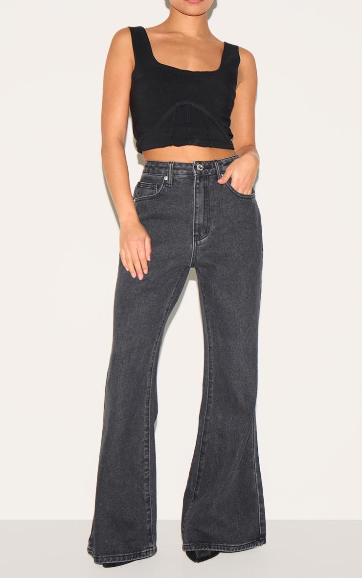 Made from a washed black denim material with an extreme flare design for a flattering fit. Team these petite washed black denim extreme flare jeans with a corset top, heels and simple gold accessories for a seriously chic look.Length approx 66cm/26inch (Based on sample size US 2)Model wears size UK 6/ EU 34/ AUS 6/ US 2Model Height - 5ft 2inchp]:!mb-4inch>Brand: PrettyLittleThingCategory: DenimProduct type: Flared JeansColor: Washed BlackMaterial: Rigid DenimOccasion: Day