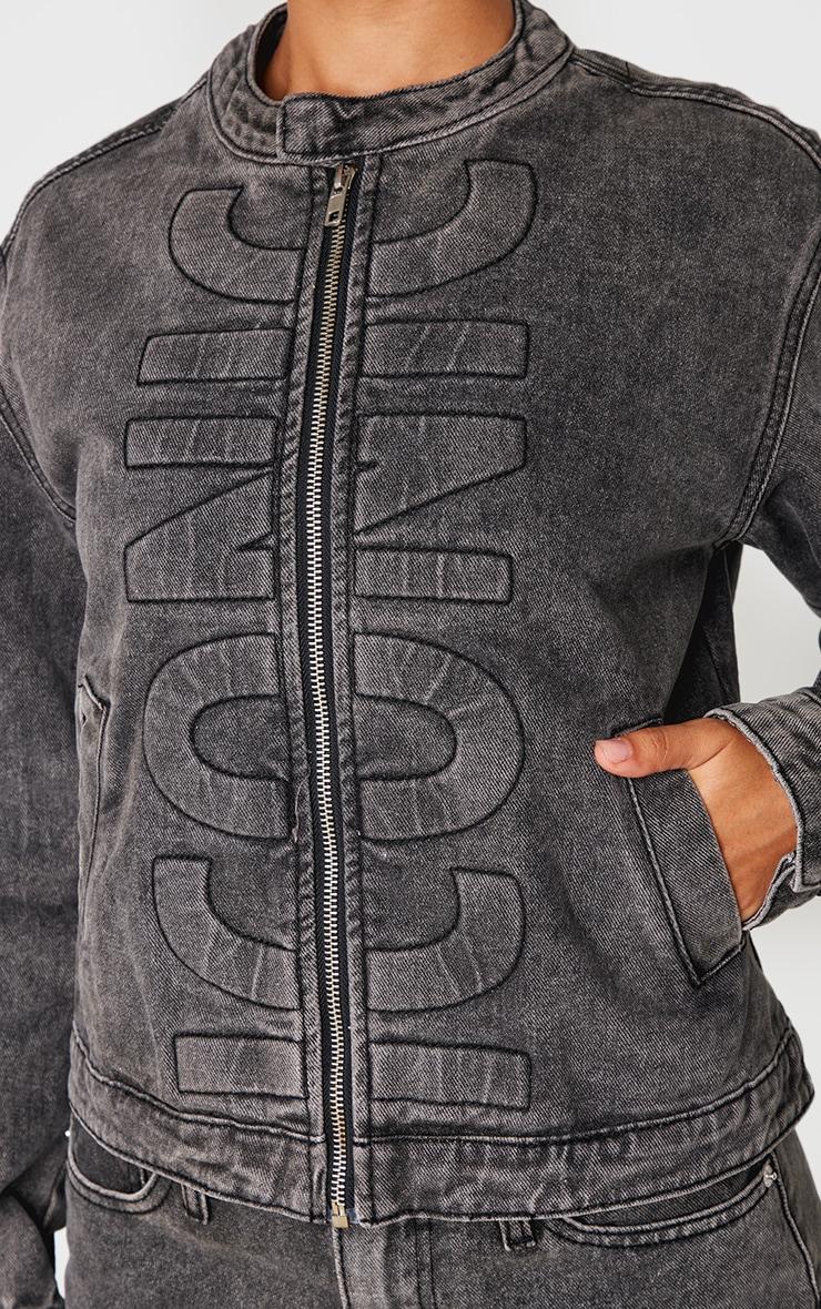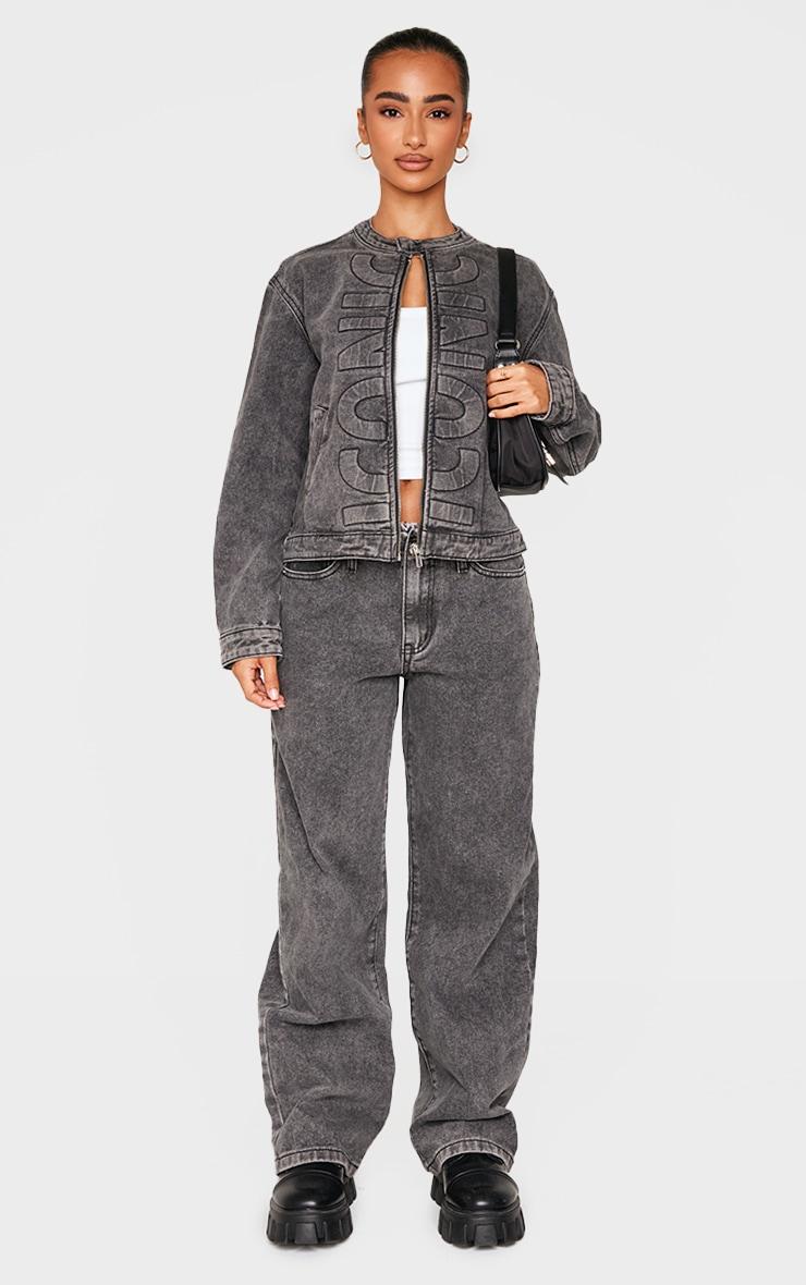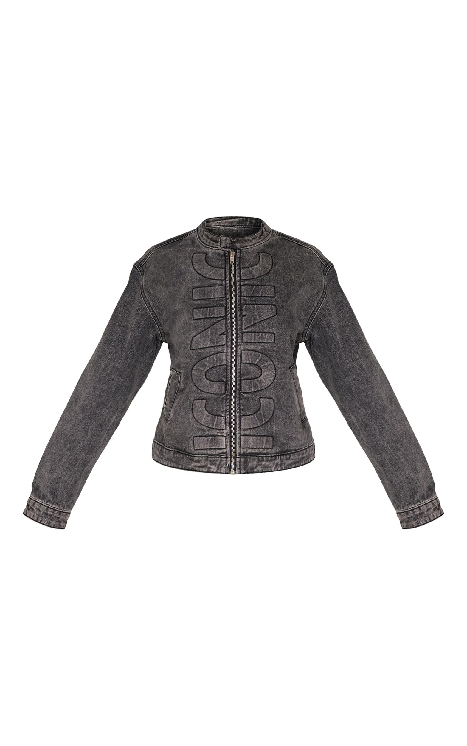 Layer up this season in style with this petite washed black iconic embossed denim jacket. Brought to you in a washed black hue denim material with an 'Iconic' embossed design, this jacket is a must have. Look all kinds of new by pairing with wide leg jeans, chunky kicks and simple accessories. It's a yes from us. Length approx 46cm/18inch (Based on sample size US 2)Model wears size UK 6/ EU 34/ AUS 6/ US 2Model Height - 5ft 2inchp]:!mb-4inch>Brand: PrettyLittleThingCategory: DenimProduct type: Denim JacketColor: Washed BlackMaterial: Rigid DenimDesign: PlainNeckline: High NeckSleeves: LongOccasion: Evening