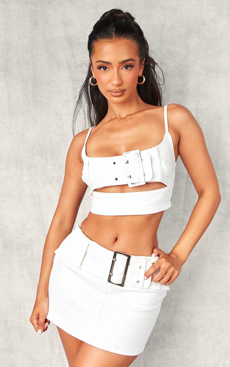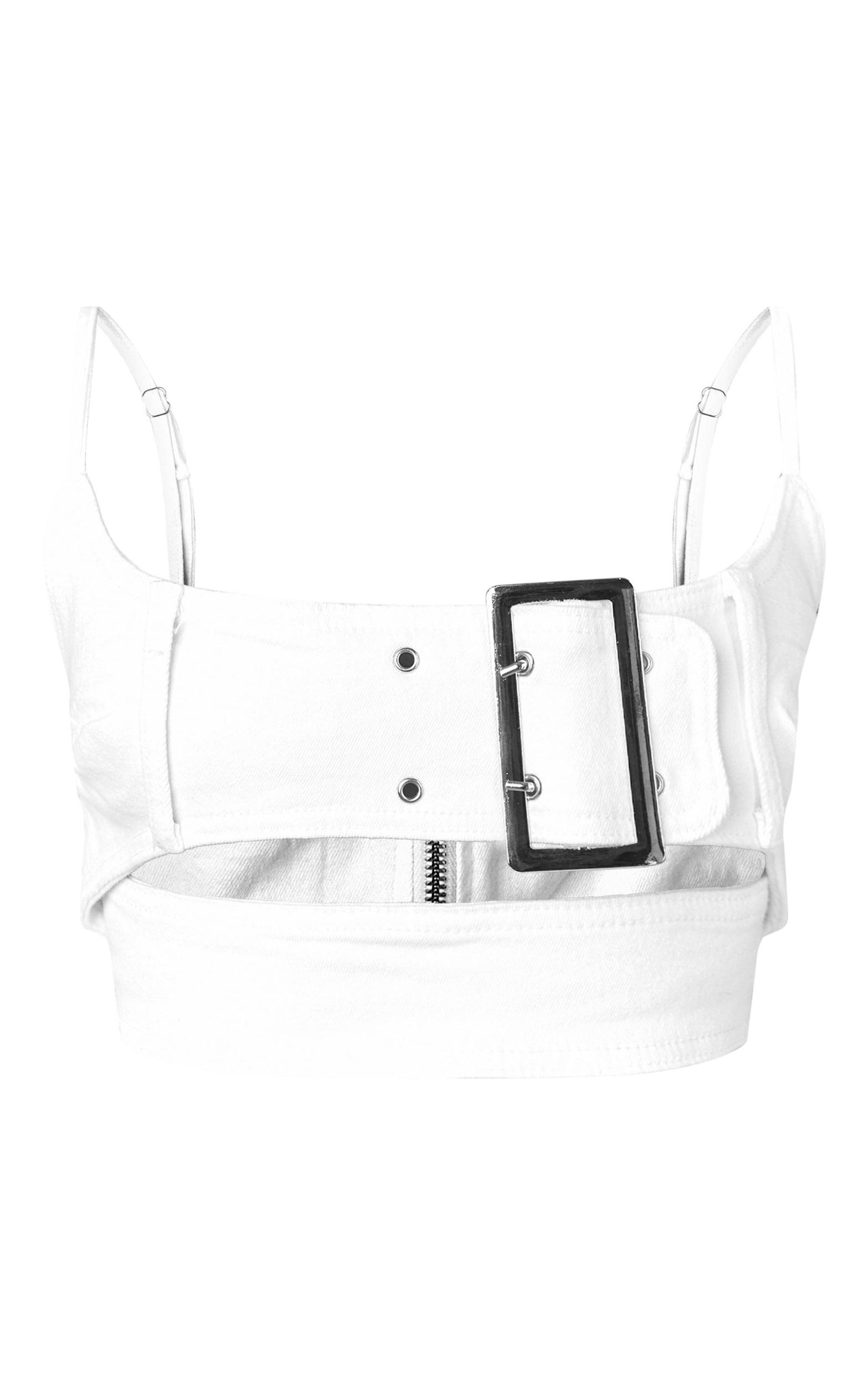 Turn up the heat this season with this petite white denim belted crop top. Brought to you in a white denim material with a belted detail, this crop top is calling your name. Pair with the matching mini skirt, heels and gold accessories for a combo we're crushing on. Length approx 35.5cm/14inch (Based on a sample size UK 6) Model wears size UK 6/ EU 34/ AUS 6/ US 2Model Height - 5ft 2inchp]:!mb-0inch>Category: DenimProduct type: Denim TopColor: BlackMaterial: Rigid DenimOccasion: Evening