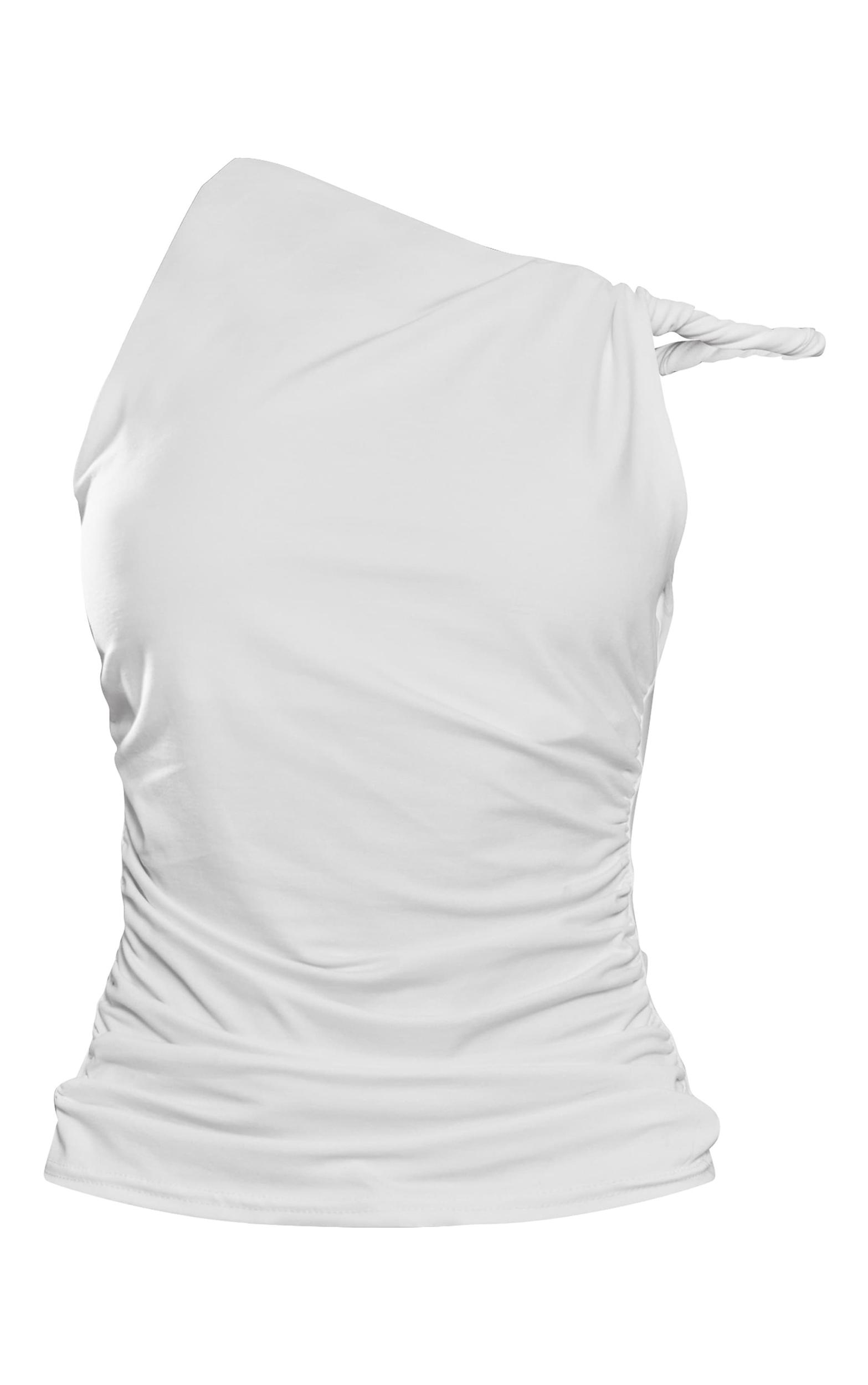 Set major trends this season with this petite white soft touch twist detail ruched top. Brought to you in a white soft touch material with a twist detail and a ruched design, what more could you want? This ubreal top will have you feeling effortlessly chic. Pair with your fave accessories and baggy jeans for a fool proof finish we are obsessing over. Length approx 46cm/18inch (Based on a sample size XS) Model wears size XSModel Height - 5ft 2inchp]:!mb-4inch>Brand: PrettyLittleThingCategory: TopsProduct type: Fitted T-ShirtColor: WhiteMaterial: Slinky JerseyDesign: PlainNeckline: AsymmetricSleeves: SleevelessOccasion: Evening