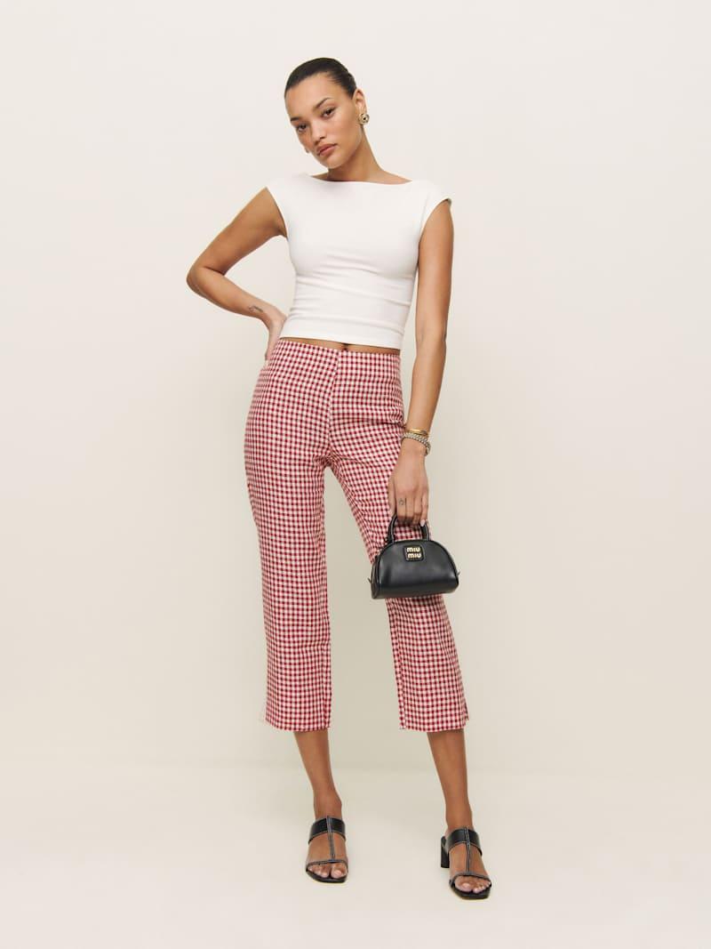 Power pants. Shop the Petra Linen Pedal Pusher Pant from Reformation, a high-rise linen pant with a cropped leg and slit at the leg opening.
