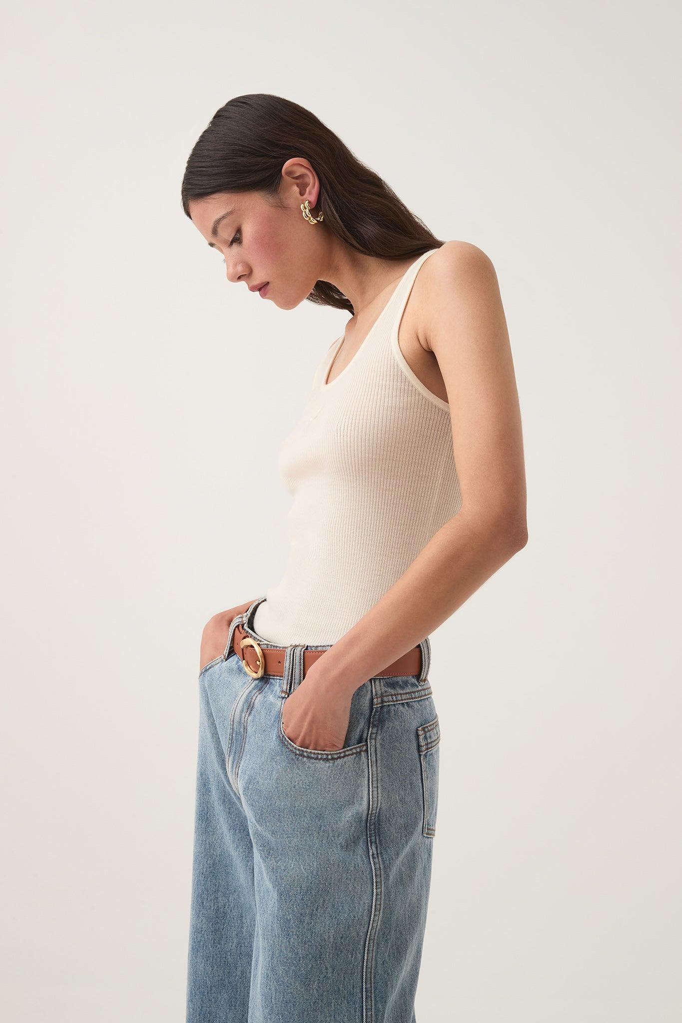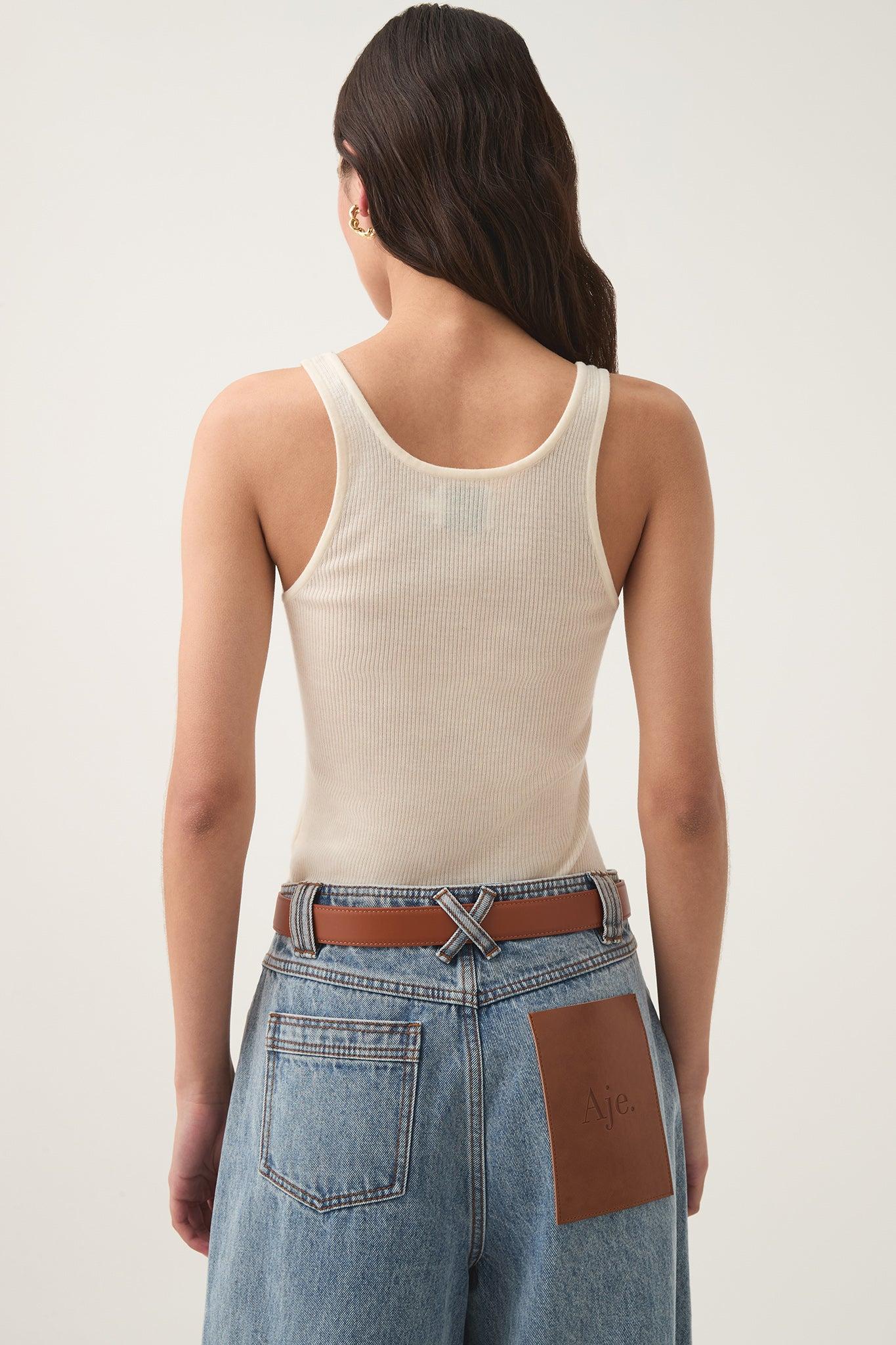 PRODUCT DETAILS Women’s knit tank Slim fit Semi-sheer finish Scoop neckline Embroidered logo detail at front Shop All Body SIZE AND FIT Model wears a size AU 8/S Model: 178cm/5’10 Bust: 78cm Waist: 59cm Hips: 86cm FABRICATION 100% Merino Wool
