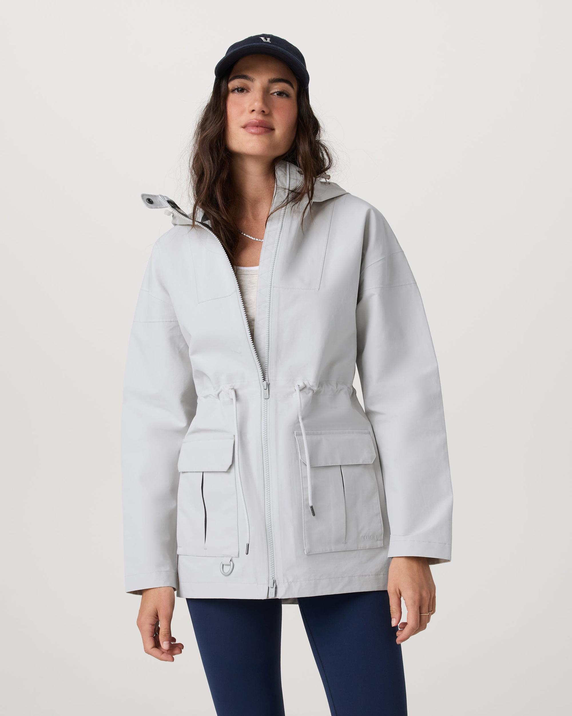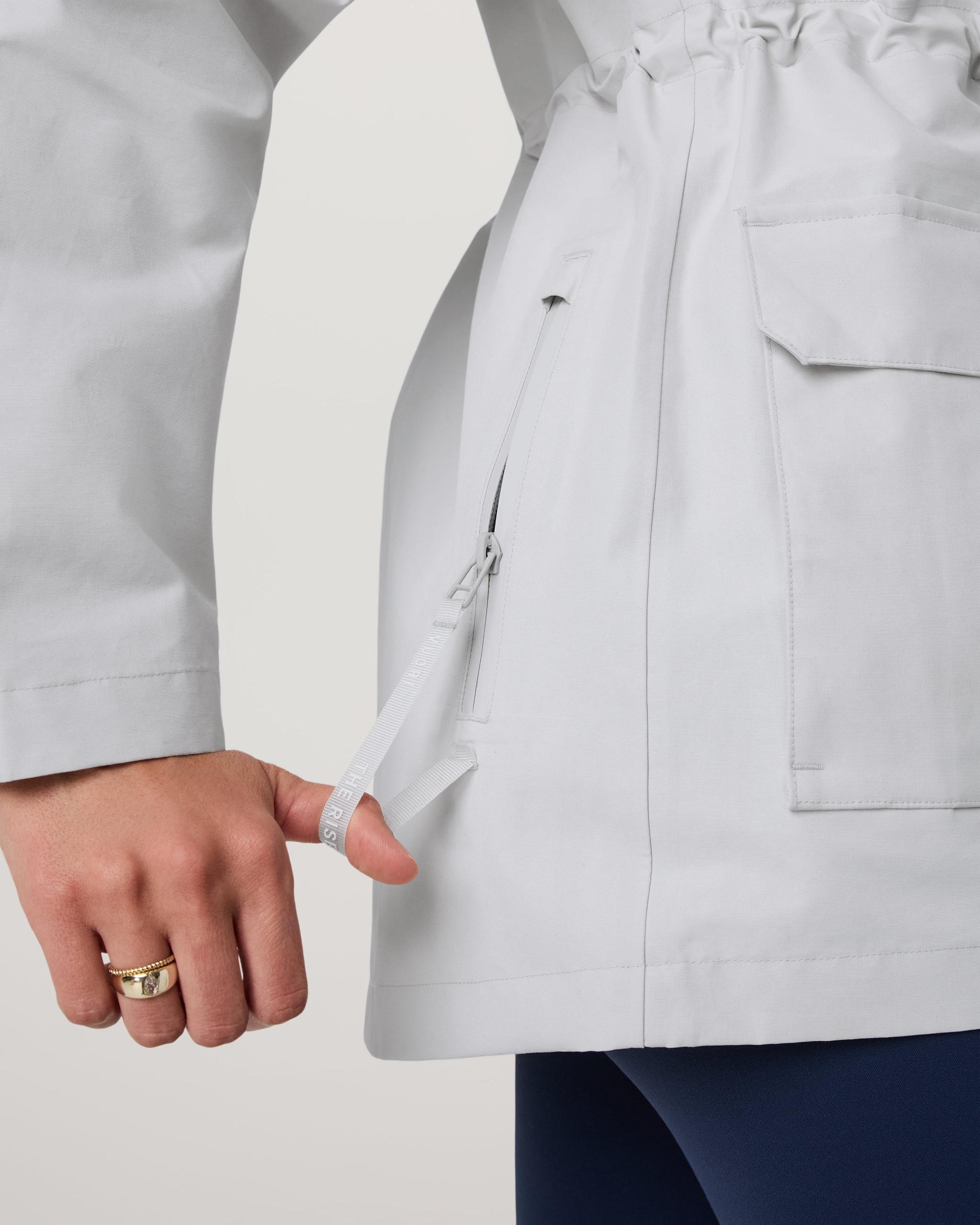 Shop the Pfeiffer Rain Jacket in Silver Cloud at Vuori. This women’s waterproof jacket features a cinchable waist and stash pockets for rainy-day utility.