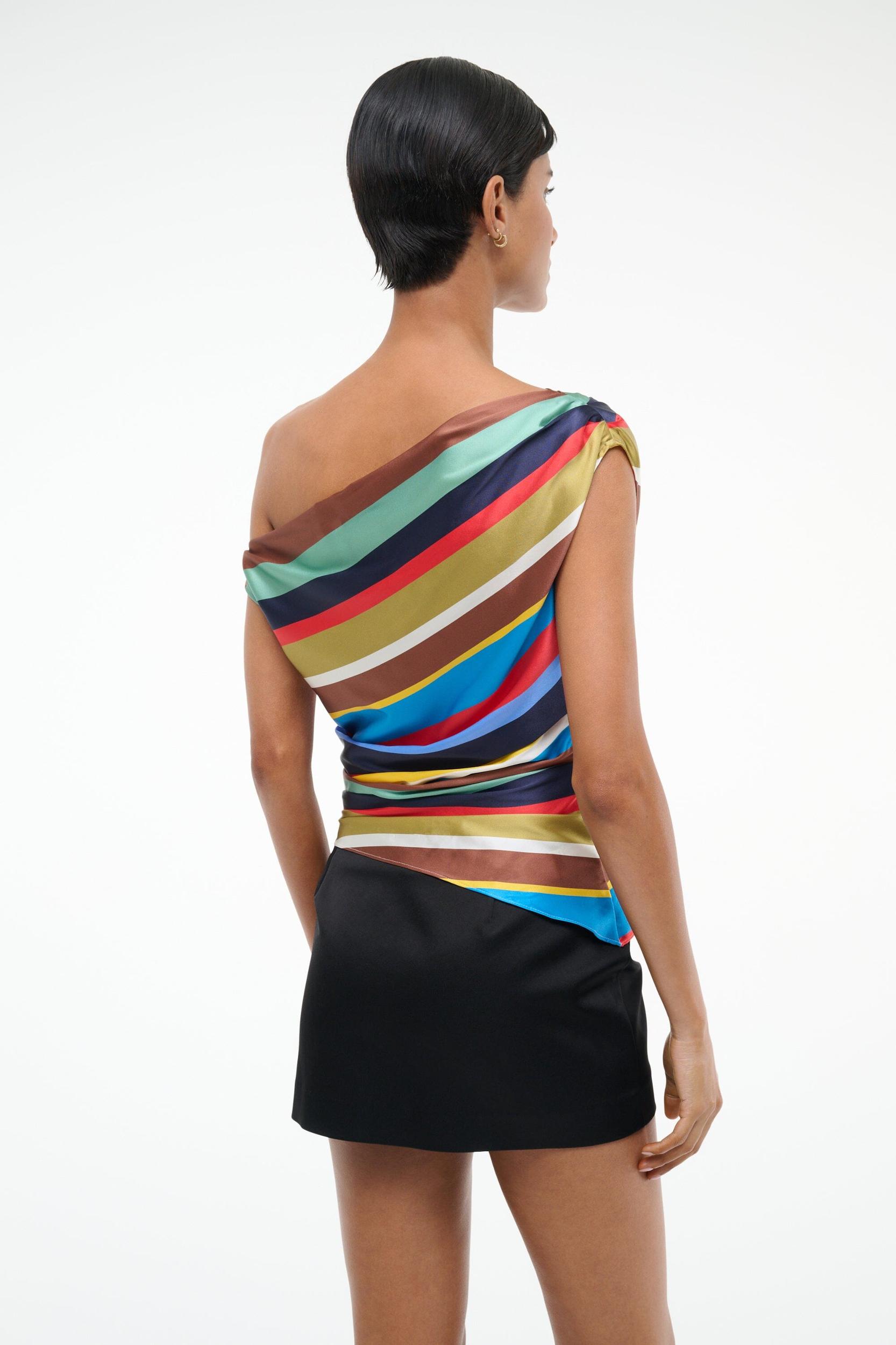 An off-the-shoulder top crafted from a silk satin fabric that offers some stretch for added ease. The Phare Top features a drapey yet fitted silhouette for any occasion.