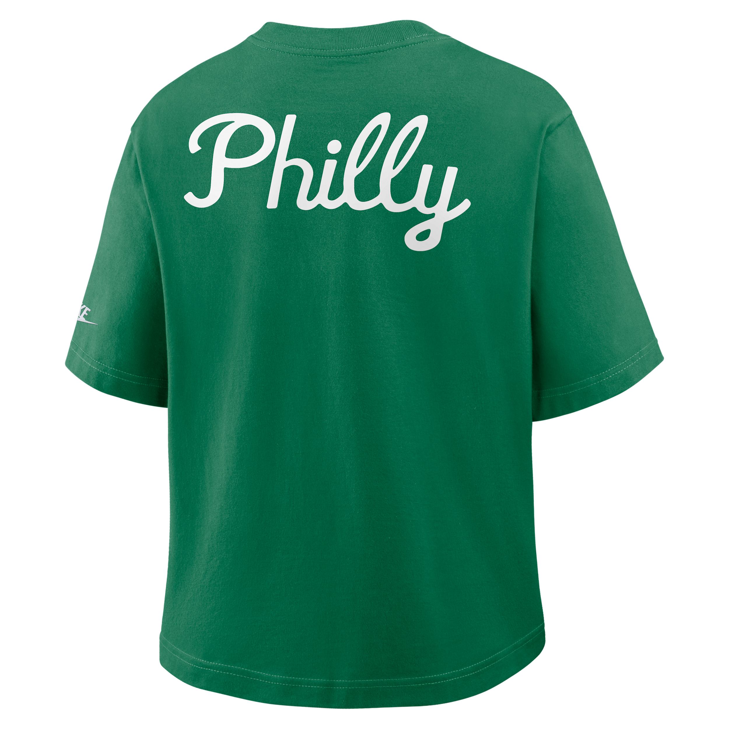This Rewind Pocket Boxy T-Shirt lets you support the Jacksonville Jaguars with a vintage team look. Its soft cotton fabric and dropped shoulders help deliver a comfortable feel on game day. [] Product Details:1 chest pocket. 100% cotton. Machine wash. Imported. Style: 11CM45WQ9N; Color: Teal; Size: L; Gender: Female; Age Group: Adult | Jacksonville Jaguars Rewind Pocket Boxy Women's Nike NFL T-Shirt in Green, Size: Large | 11CM45WQ9N-WZ9
