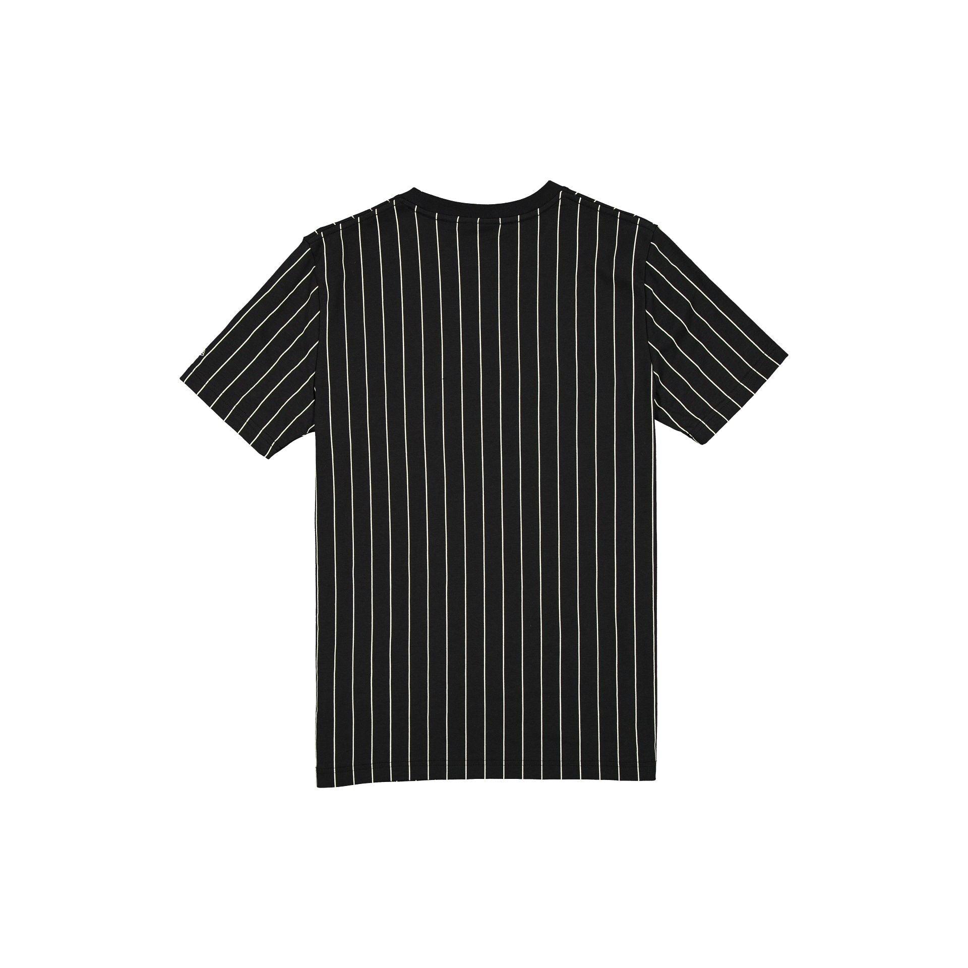 The Philadelphia Flyers Throwback Pinstripe Wordmark T-Shirt features a twill applique Flyers wordmark and logo at the front with a New Era jock tag at the left hip.Fabric: 63% Cotton, 37% Polyester