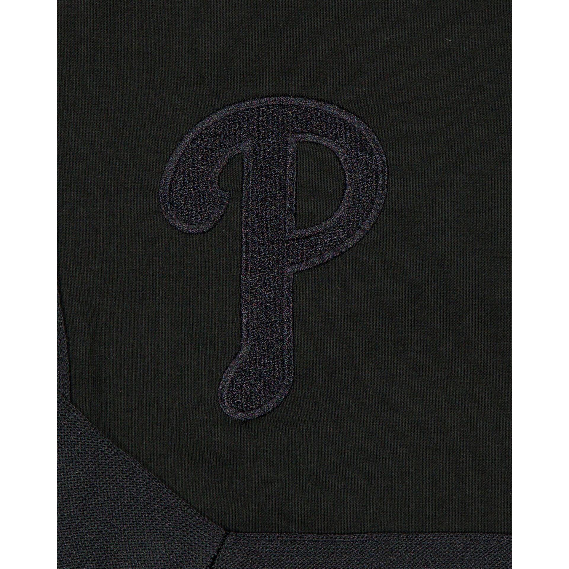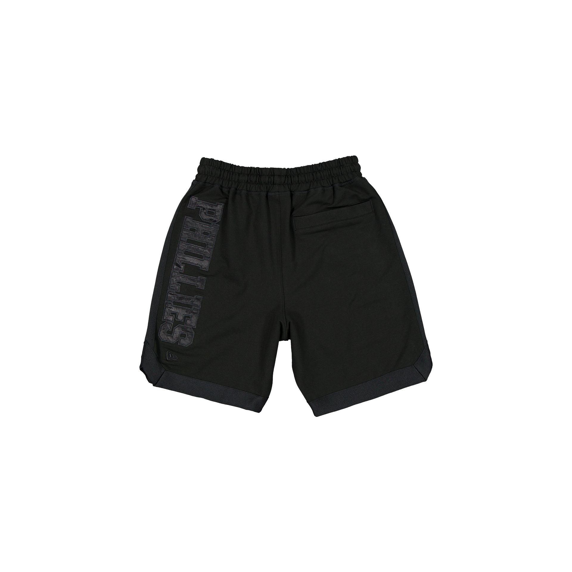The Philadelphia Phillies Black on Black Logo Select Shorts features an embroidered Phillies logo at the right-wear leg and a satin applique with a tonal stitch team wordmark at the rear left leg.Fabric: 52% Polyester, 42% Cotton, 6% Spandex