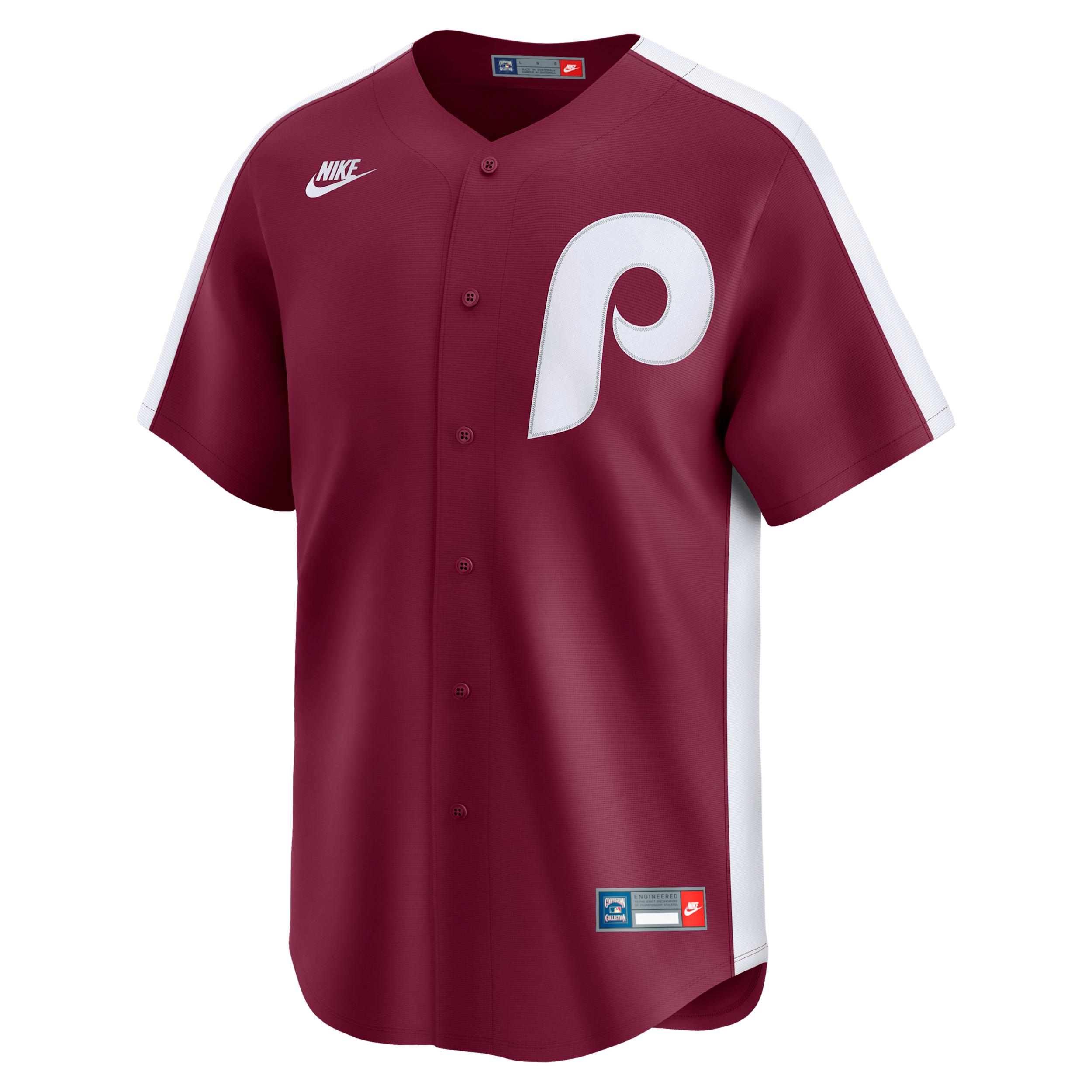 Designed with an authentic throwback look, this Philadelphia Phillies Cooperstown Jersey is inspired by the uniforms your favorite MLB squad wore on the field. The sweat-wicking, double-knit mesh fabric helps deliver a breathable and comfortable feel all season. Benefits:Nike Dri-FIT ADV technology combines moisture-wicking fabric with advanced engineering and features to help you stay dry and comfortable. Vapor Premier chassis is a breathable, high-performance fabric that helps improve mobility and moisture management. Sublimated recycled twill wordmark and sleeve appliques help provide a more authentic look and feel. [] Product Details:Heat-applied recycled woven jock tag. Tagless neck label. 100% recycled polyester. Machine wash. Imported. Style: CO2507M7PHP; Color: Maroon; Size: XL; Gender: Male; Age Group: Adult | Philadelphia Phillies Cooperstown Mens Nike Dri-FIT ADV MLB Limited Jersey in Red, Size: XL | CO2507M7PHP-A3F