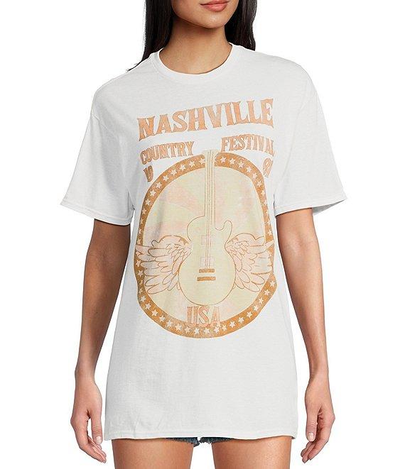 From Philcos, this t-shirt features: Round neckline Short sleeves "Nashville Country Festival" verbiage and a circle-shaped graphic with center guitar screen print and other verbiage on the front Pullover styling Cotton Machine wash/line dry Imported.