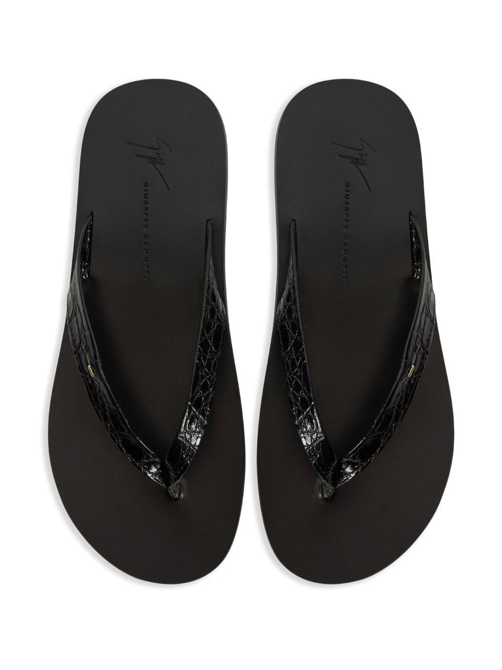 Giuseppe Zanotti Philemon flip flops | Black | black | slip-on style | branded leather insole | leather sole | embossed crocodile effect | Leather/Calf Leather/Calf Leather | Flip-Flops & Slides | Shoes | Men