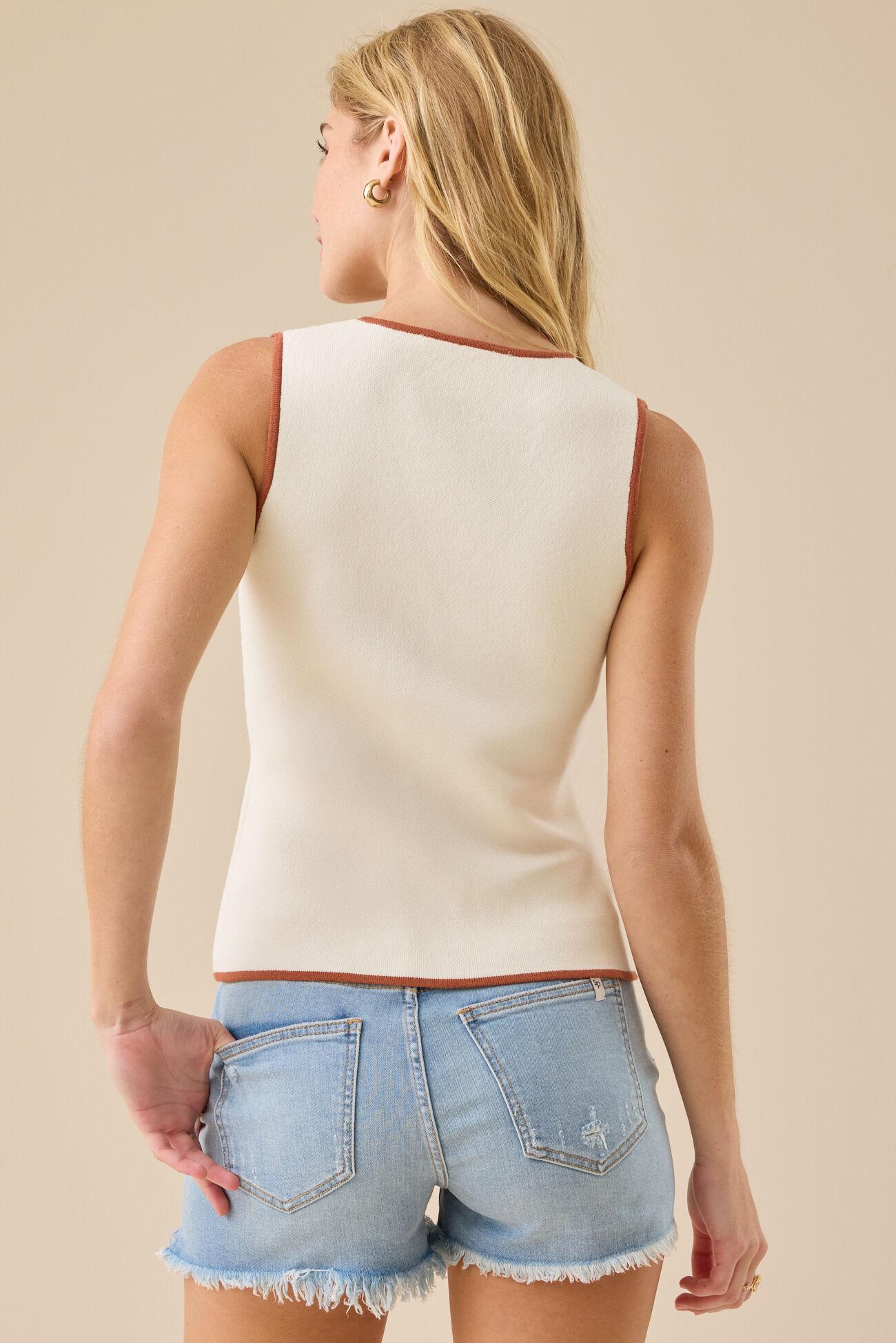 Poised Mindset Ivory Off-the-Shoulder Button-Front Vest Top