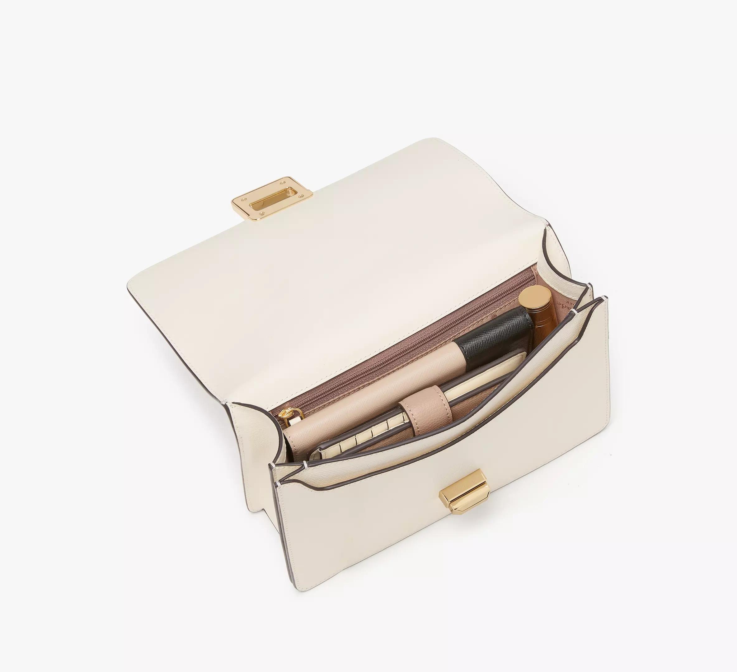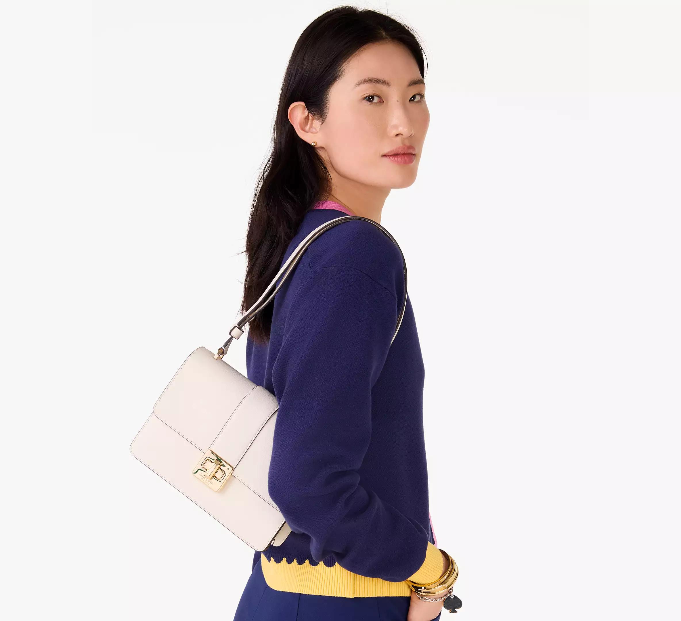 Elevate your look with our Phoebe Turnlock Shoulder Bag. Crafted from refined grain leather, this shoulder bag is designed with pockets to store and organize your essentials. It's functional *and* effortlessly stylish—a must-have for your collection.